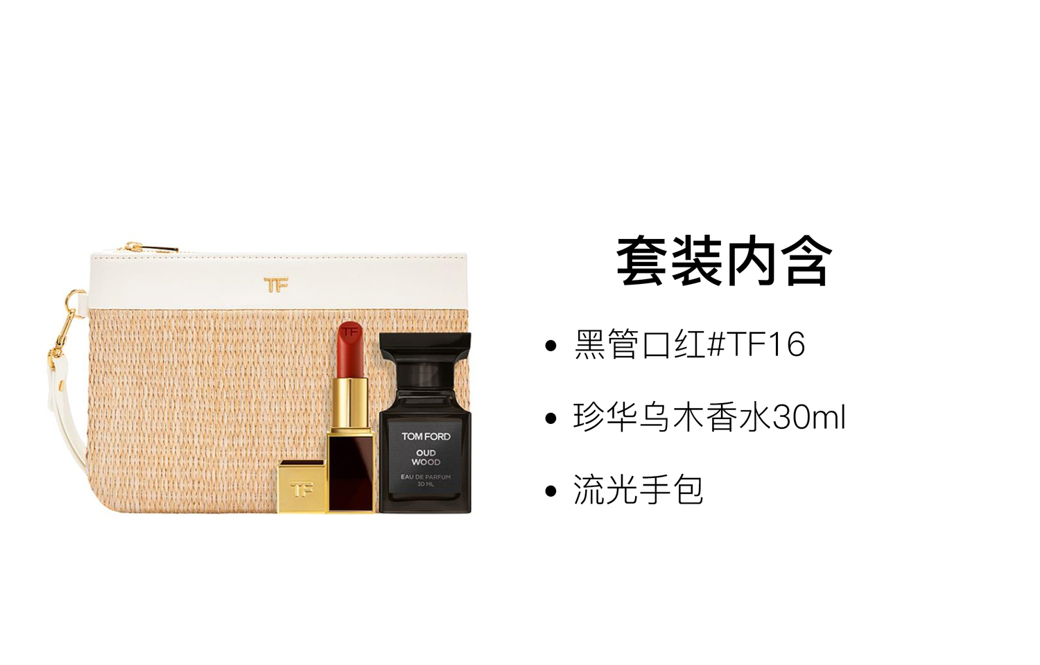 Набор из трех предметов: черная помада в тюбике #TF16 + духи Rare Ebony 30 мл + мерцающая сумочка