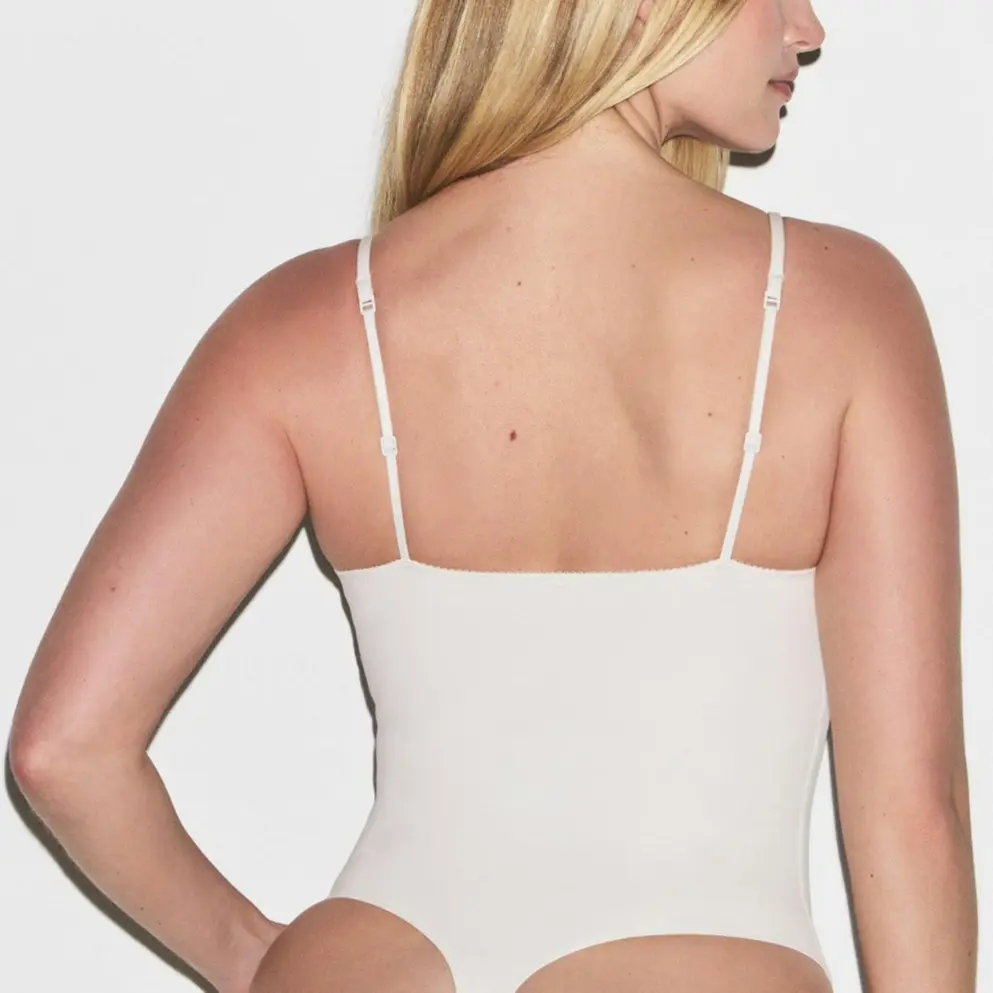 SS25 Cotton Shapewear слитный комбинезон-боди стринги Skims, Marble/Marble