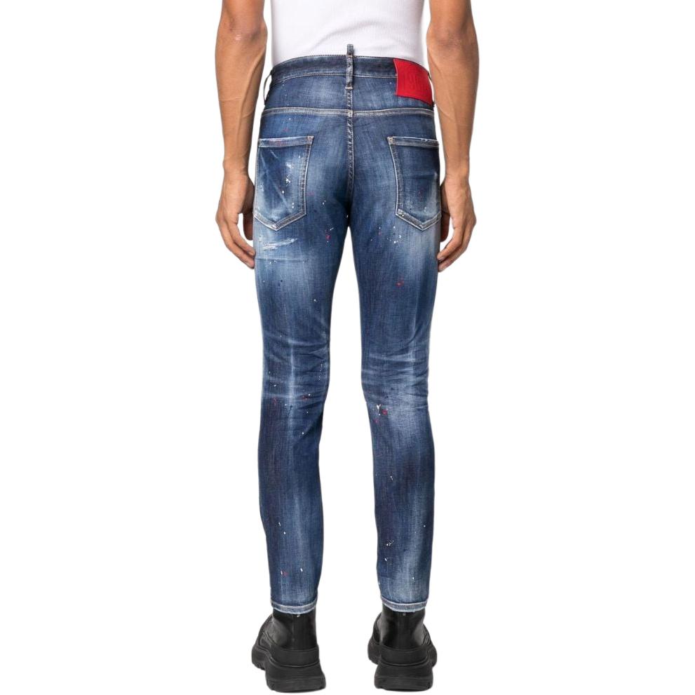 Джинсы slim-cut с эффектом потертости и брызгами краски DSQUARED 2, индиго
