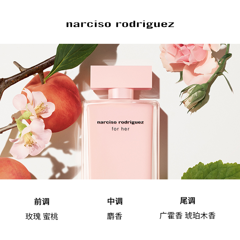 Narciso Rodriguez For Her — культовый женский аромат, который стал символом современной элегантности, чувственности и утонченной женственности. Основное звучание построено вокруг благородного мускуса, который усиливается нежными цветочными и теплыми древесными нюансами, создавая чистый, глубокий и притягательный шлейф.