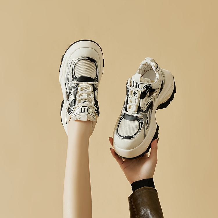HR Кроссовки Height Increasing Low Top Chunky Sneakers Women's Beige Black