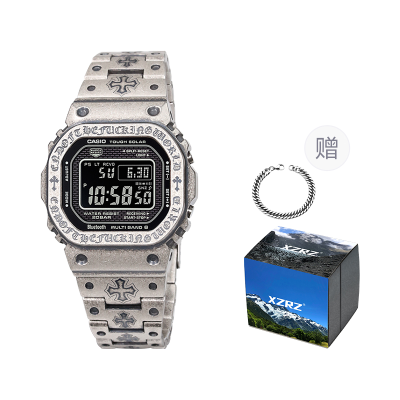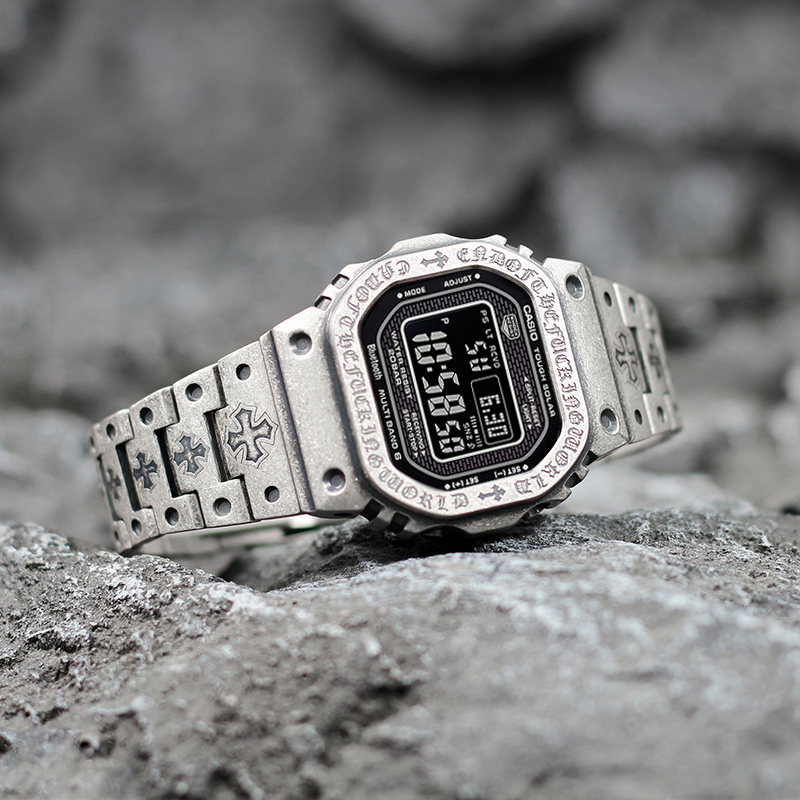 GMW-5000 — оригинальная модель G-Shock 1983 года. Серия GMW-B5000 унаследовала ее характерный квадратный дизайн и получила полностью металлическую отделку вместе с улучшенными функциями, включая связь со смартфоном. Технология высокоплотного монтажа также позволяет часам сохранять свой размер. Задняя часть часов имеет прочную винтовую застежку и обработана DLC для устойчивости к износу.