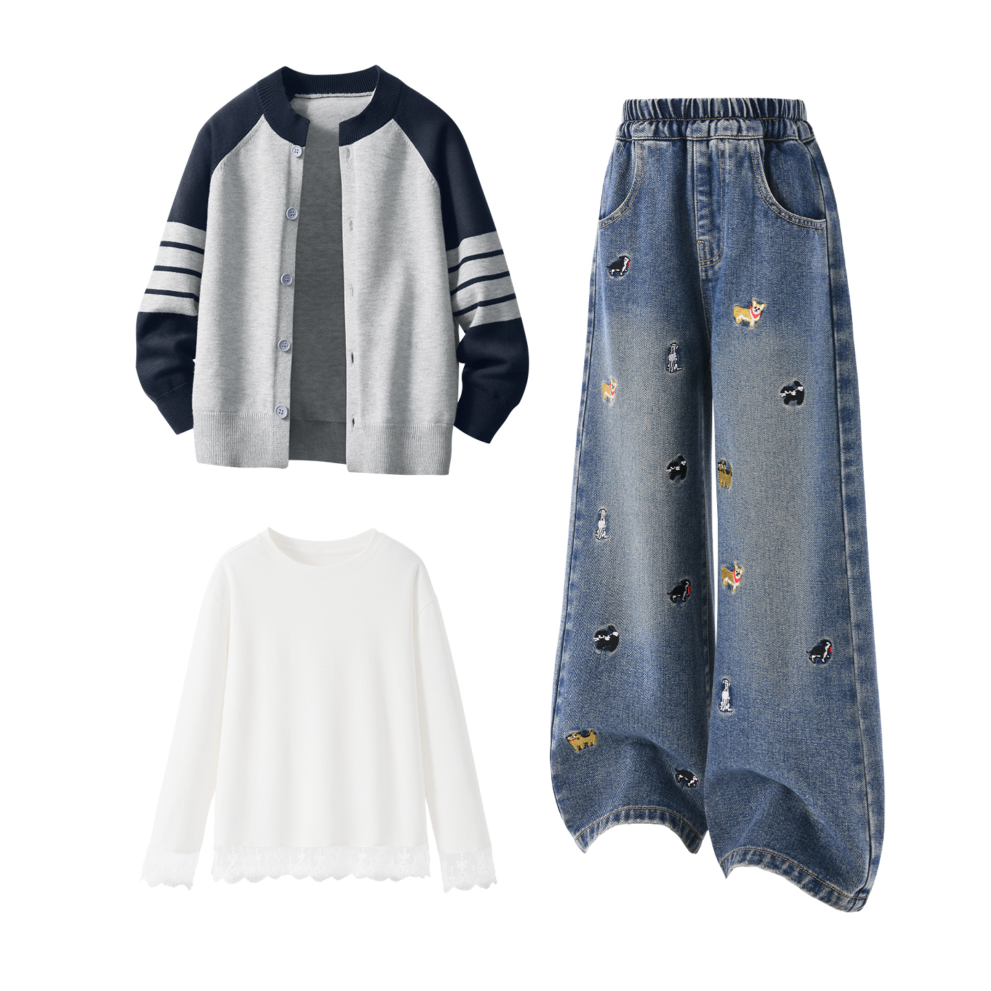 Детская повседневная спортивная одежда Disney, Solid Color Black White+Solid Color Denim Blue+Solid Color White