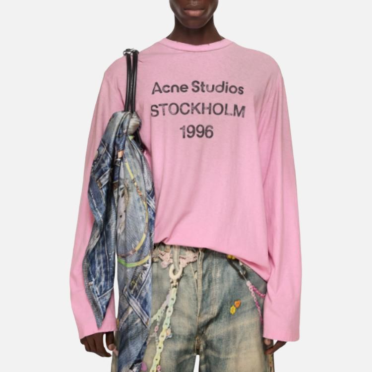 Футболка с принтом логотипа и эффектом поношенности Acne Studios, розовый
