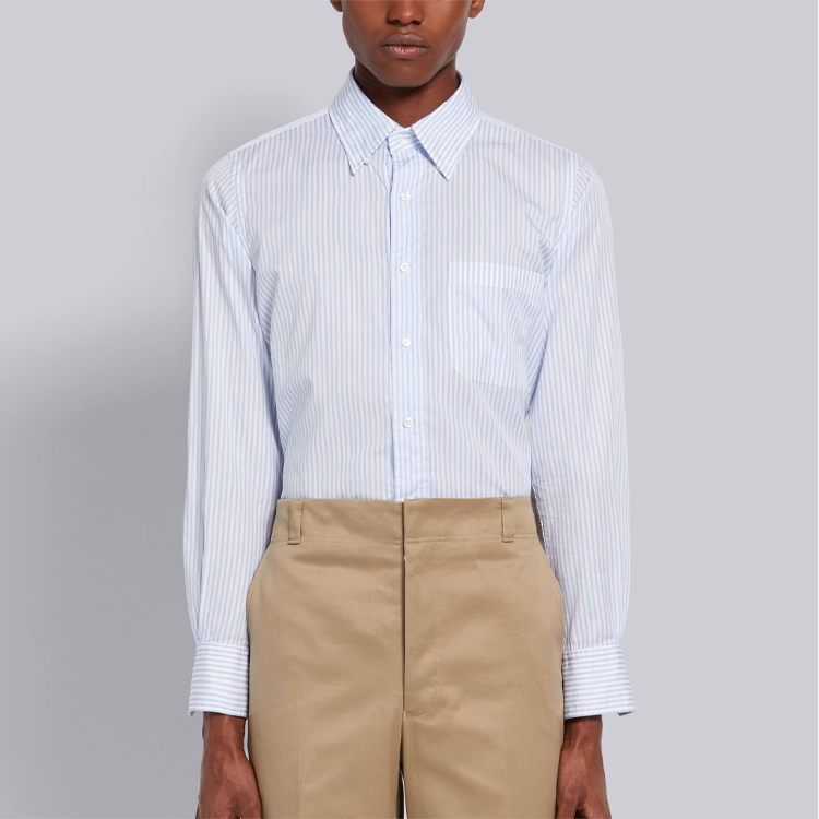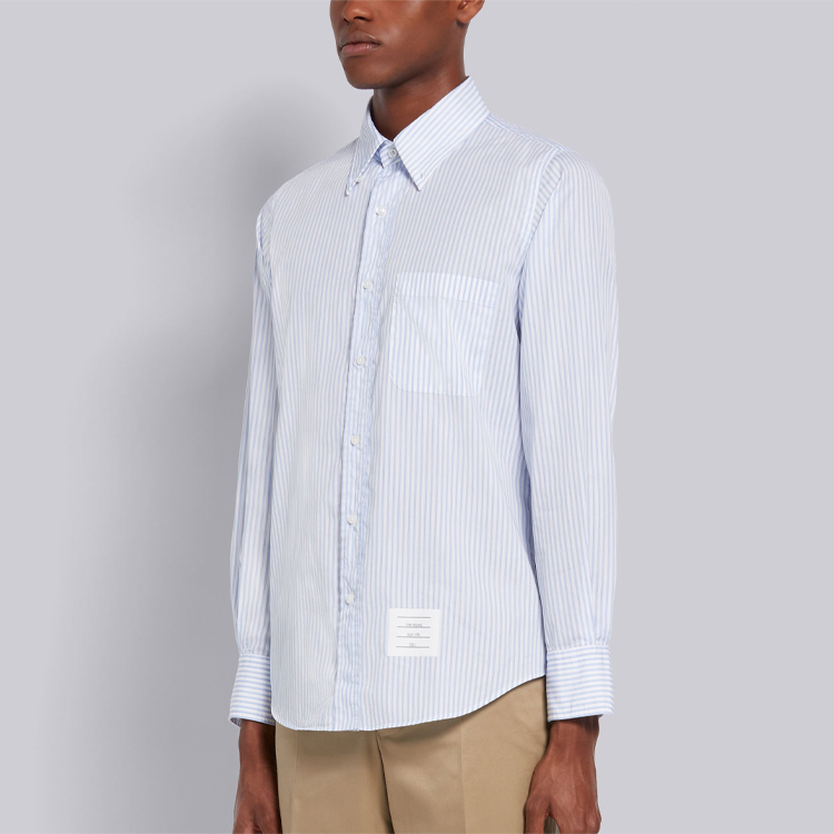 Рубашка с принтом пинстрип и фигурным подолом THOM BROWNE, светло-голубой
