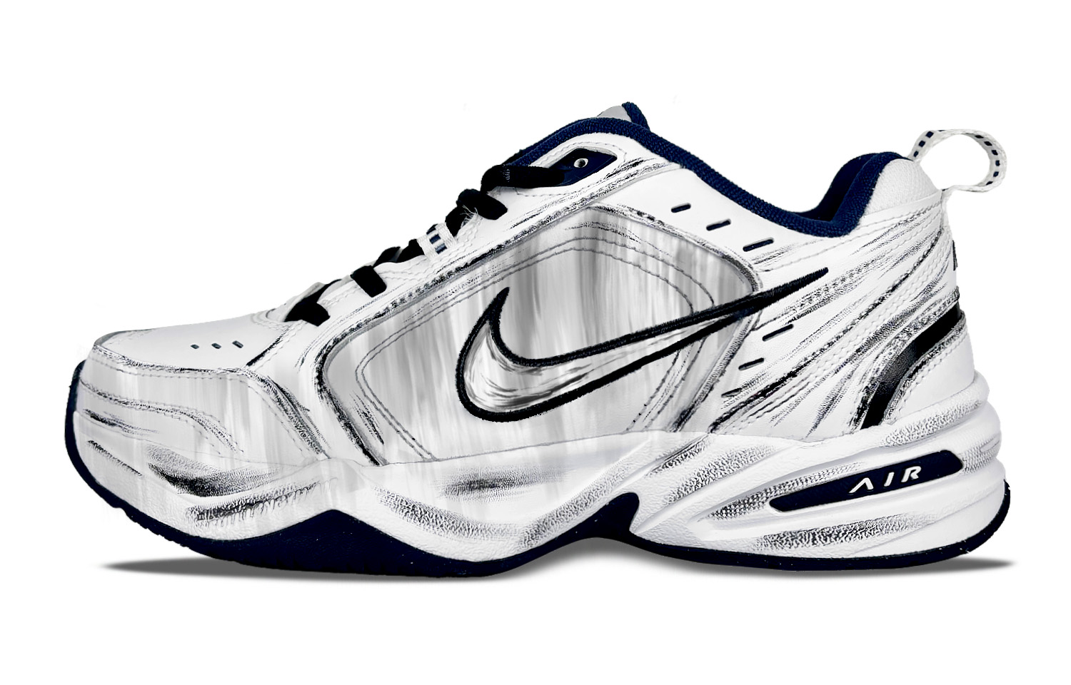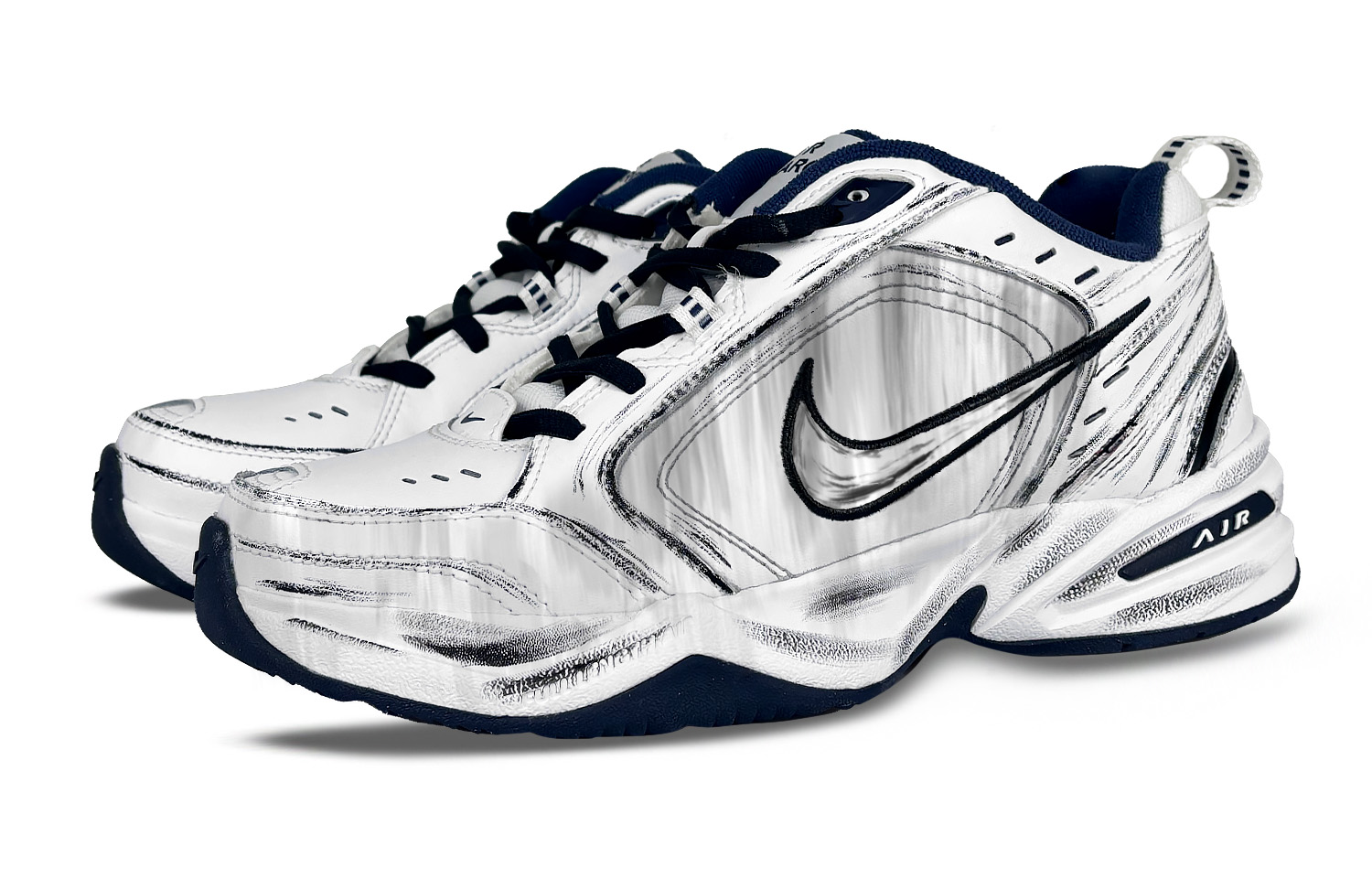 Эти кастомные кроссовки созданы на основе модели Nike Air Monarch 4 White Navy унисекс. Оригинальный дизайн кроссовок выбран случайным образом. Вдохновение почерпнуто из линейных рисунков. Все изображения продукта взяты с реального продукта; возможны незначительные различия в цвете из-за особенностей окружающей среды и особенностей экипировки. Эти кастомные кроссовки полностью изготовлены вручную и предназначены для повседневной носки. Пожалуйста, избегайте интенсивных физических нагрузок и царапин от острых предметов, а также не используйте для чистки высококонцентрированные органические растворители.