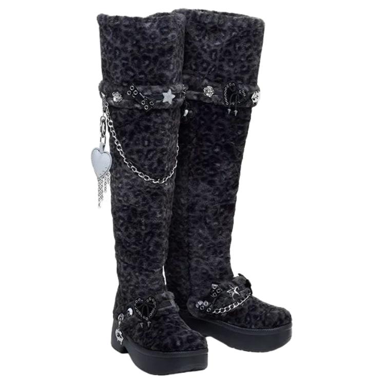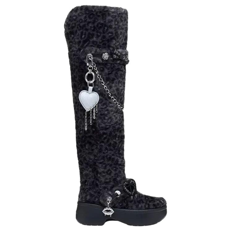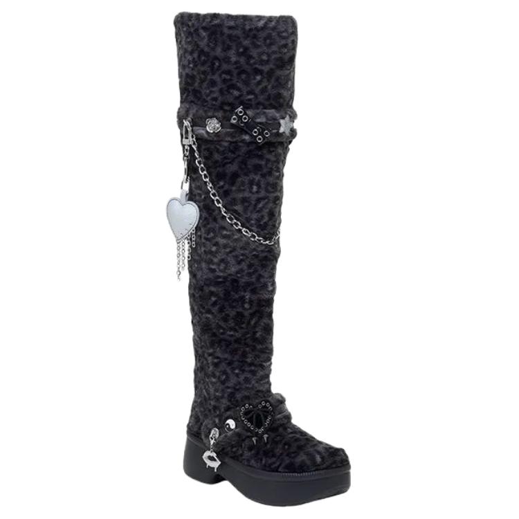 Crocs Классические ботинки до колена с леопардовым принтом Women's Black