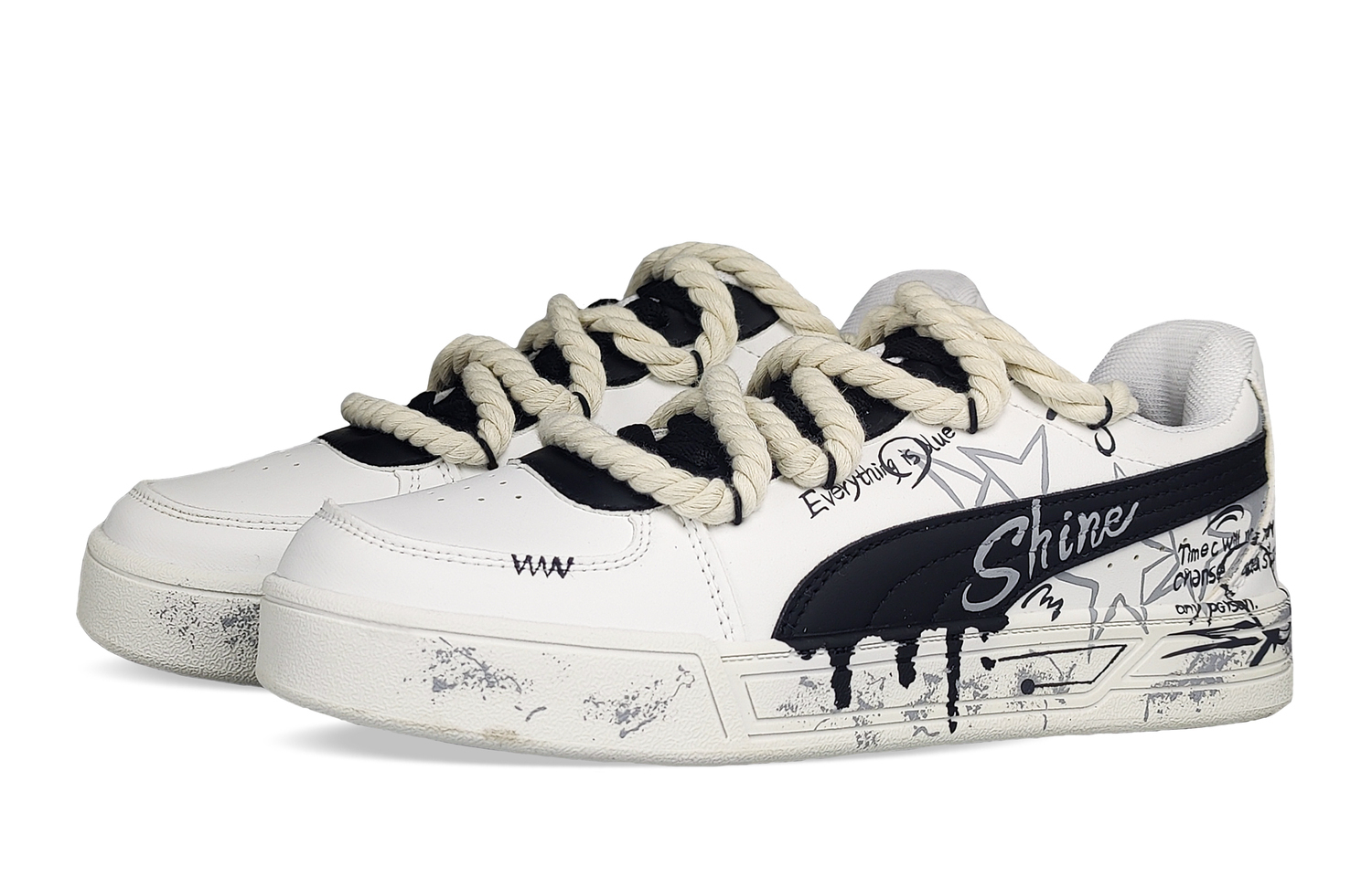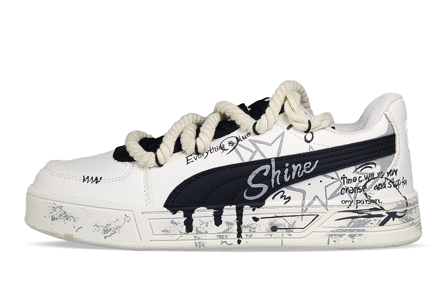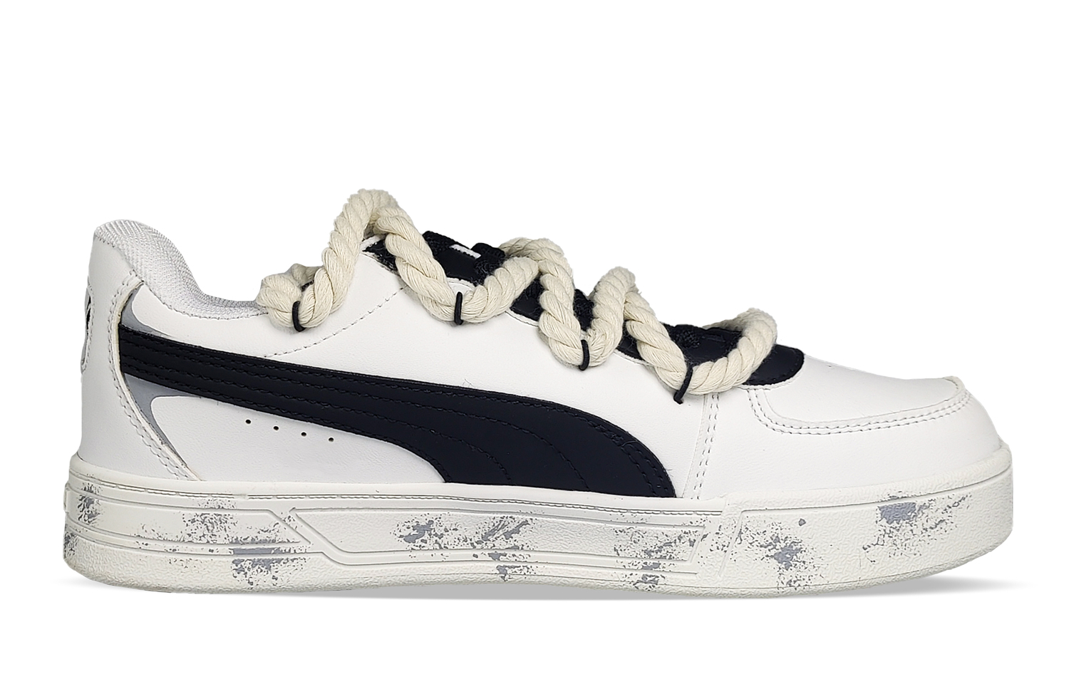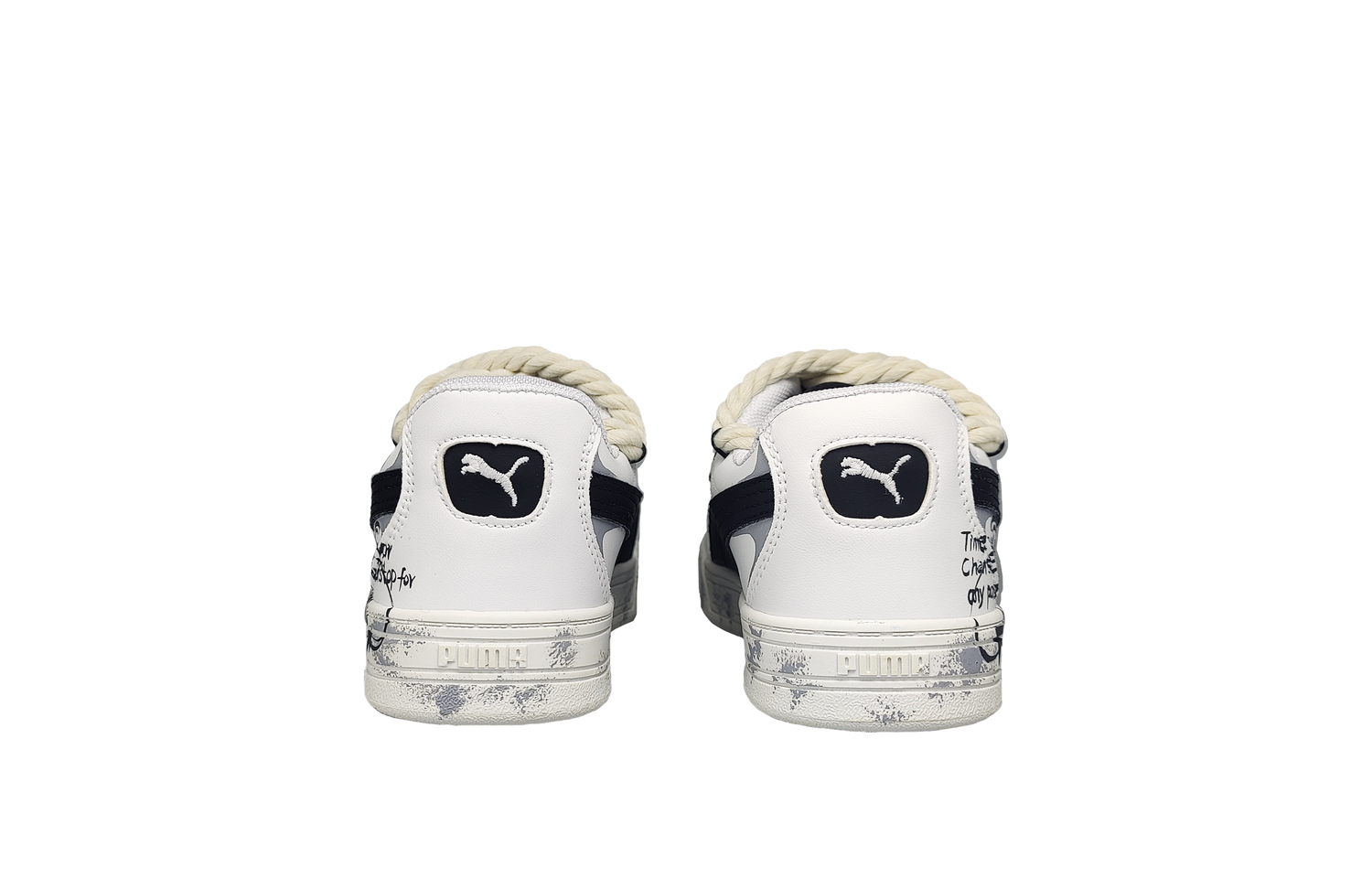 Первоначальной обувью для этой модели, изготовленной на заказ, были кожаные кроссовки PUMA Skye в уличном стиле с низким верхом.
