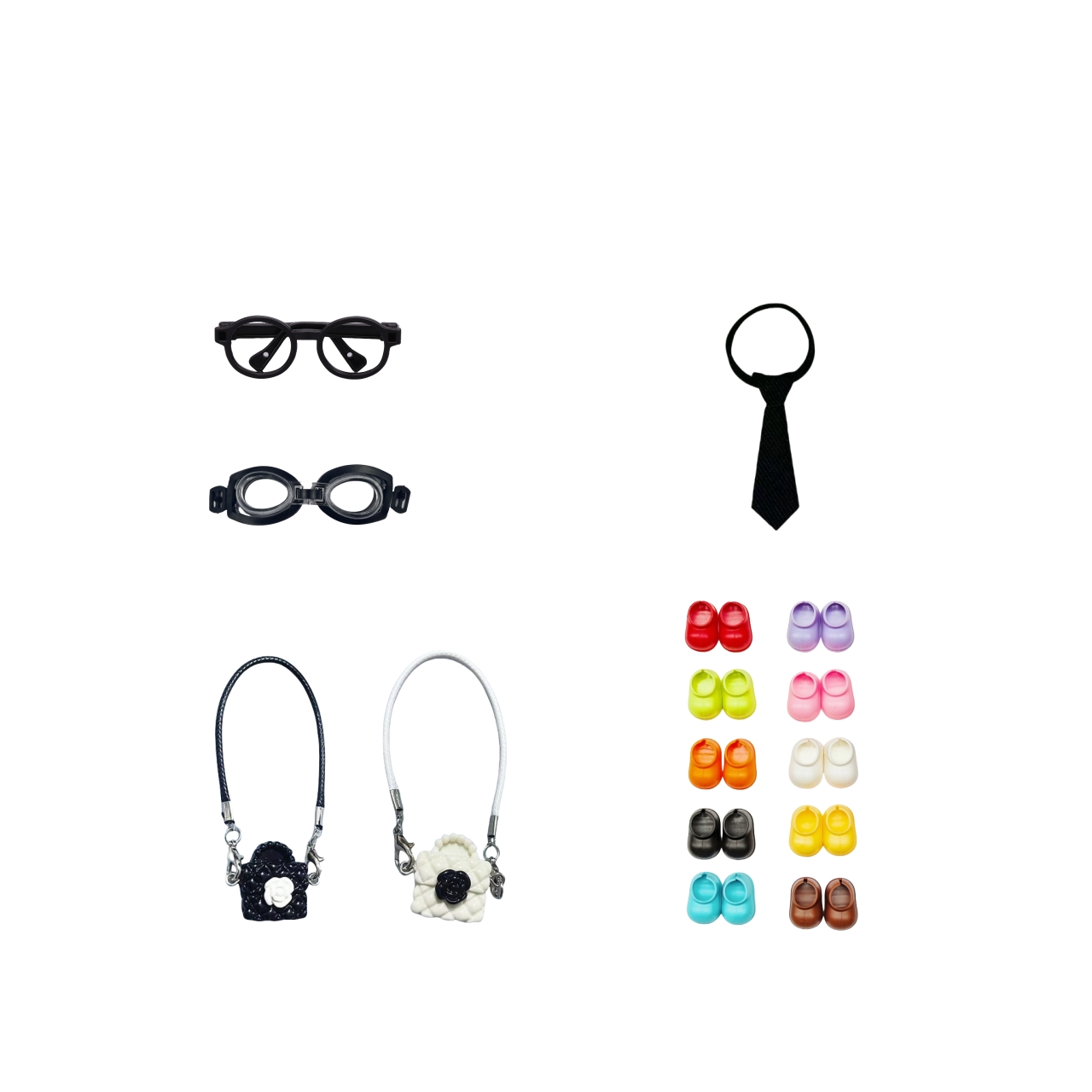 Название продукта: [Аксессуары своими руками] Очки + Оправа для очков + 2 сумки через плечо + 2 пары обуви (случайный цвет) Комплект: [Включая] PU-обувь