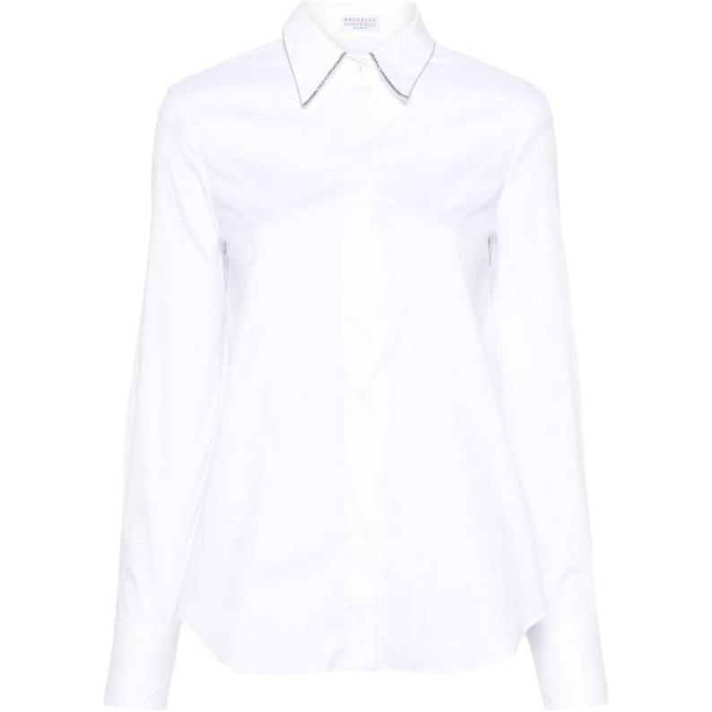 Рубашка с длинными рукавами и отделкой monili Brunello Cucinelli, белый