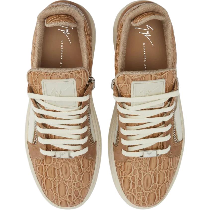 Кроссовки zip low top с эффектом крокодила Giuseppe Zanotti, коричневый