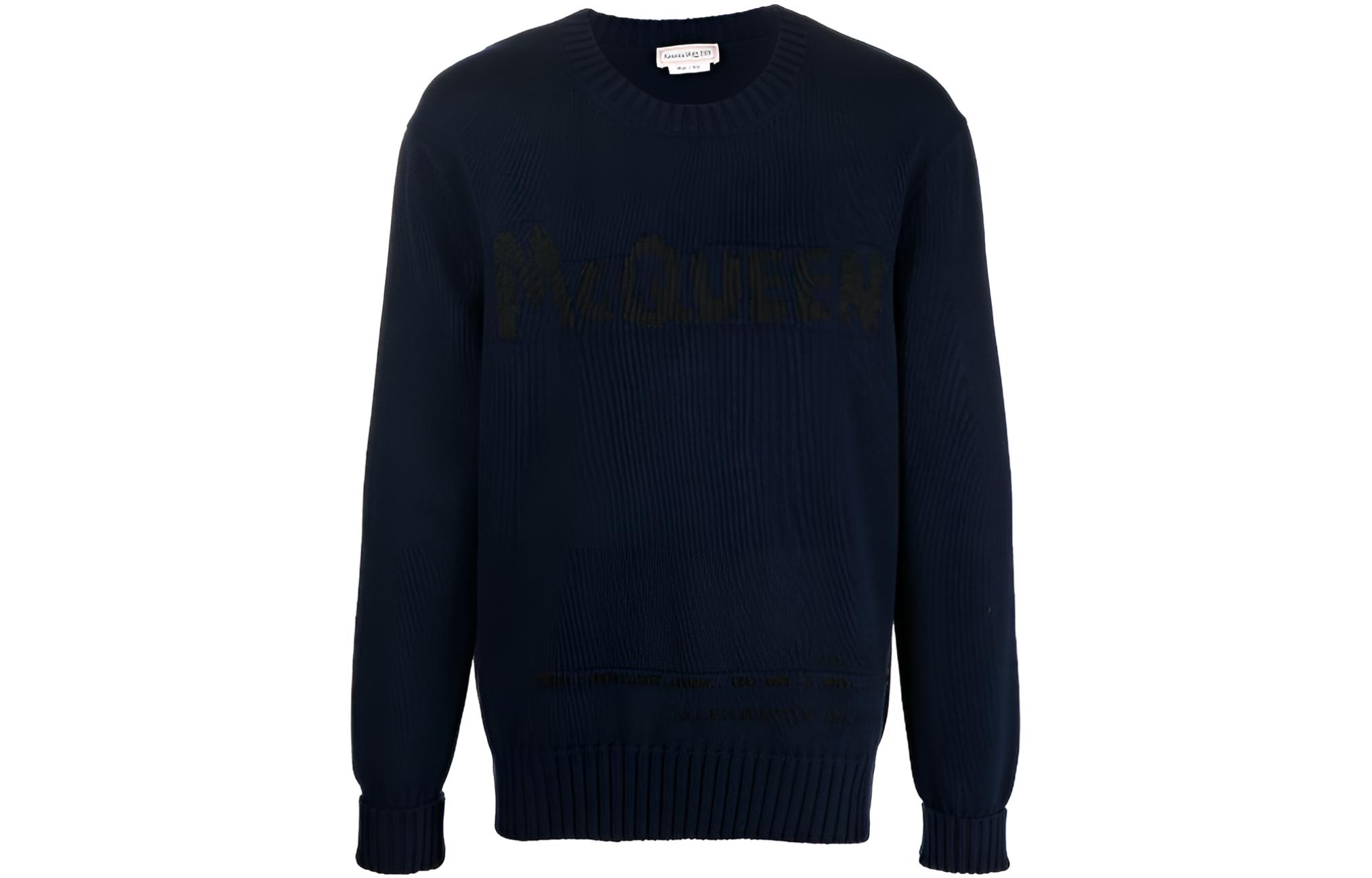 Свитер с логотипом Graffiti в технике интарсия Alexander McQueen, синий 35 542₽