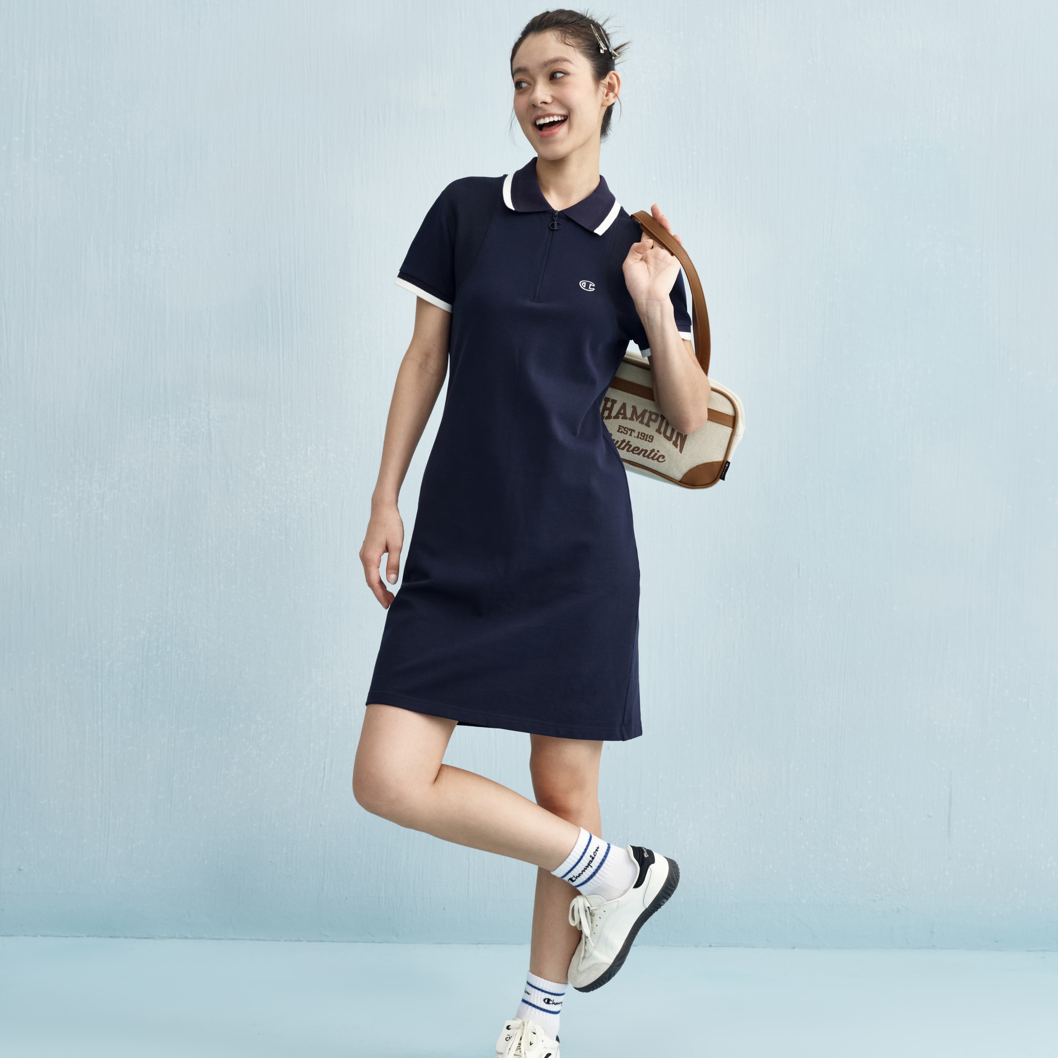Короткое платье с короткими рукавами US Version Women's Champion, синий 6 052₽