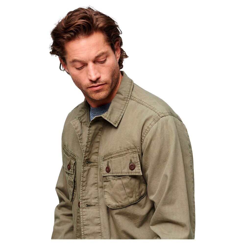 Куртка Military Overshirt, переосмысливающая традиционную рубашку в стиле милитари как винтажный вариант многослойной одежды, представляет собой инновационный взгляд на неподвластный времени стиль.
