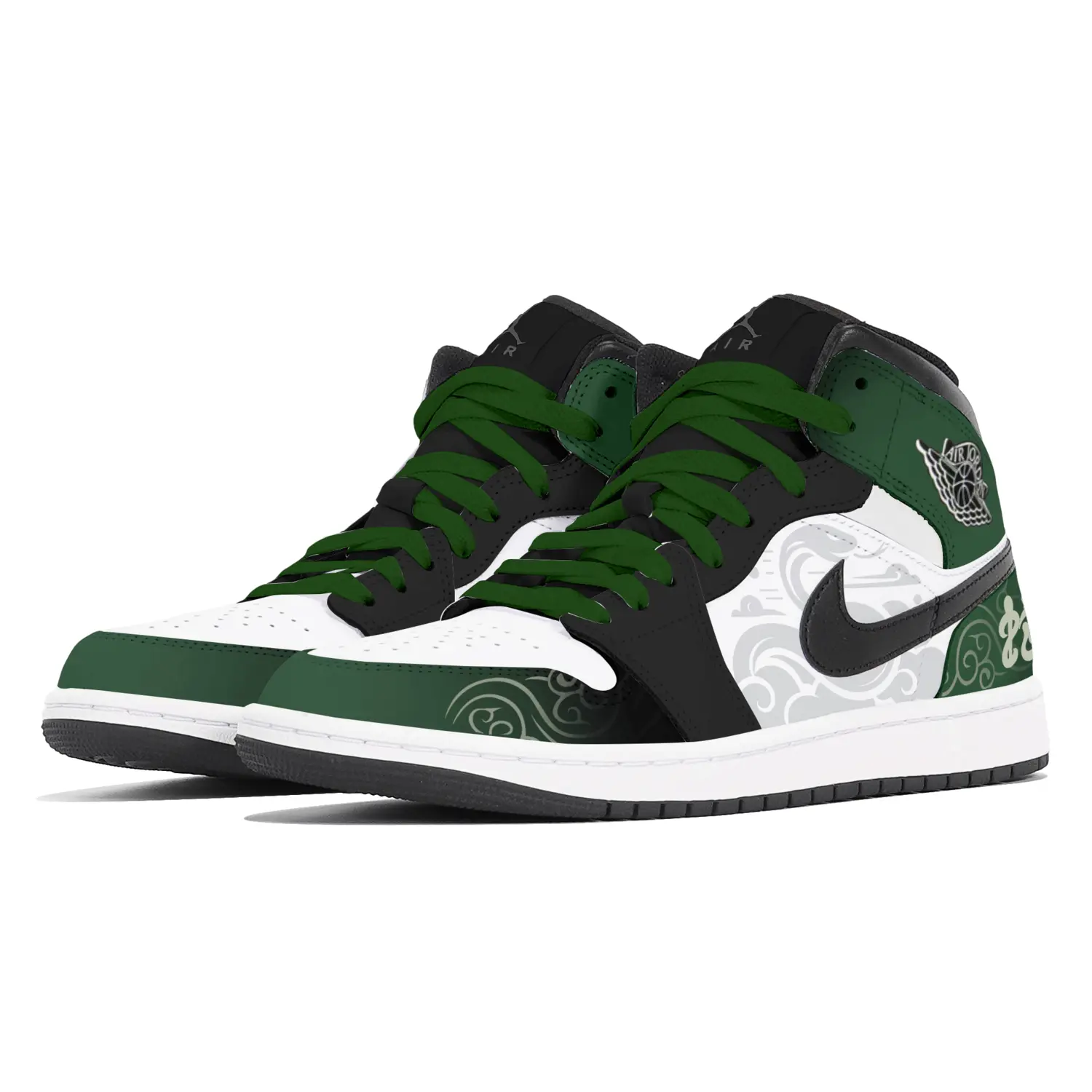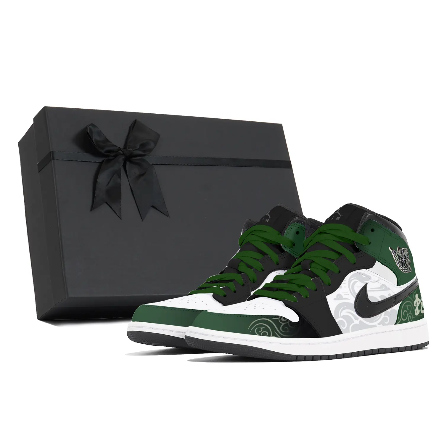 Оригинальная модель этих кастомных кроссовок - баскетбольные кроссовки Jordan Air Jordan 1 Classic Comfort Mid-Top Retro для мужчин, черно-белого цвета, код модели DQ8426-001 (Team496-Tree Python SBOX), вдохновленная годом Змеи.