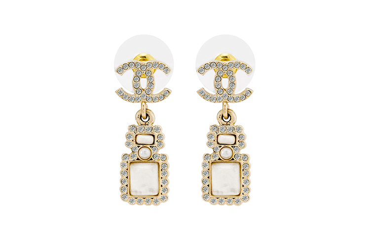 Серьги в виде парфюмерного флакона с логотипом Cc Crystal CHANEL, белый