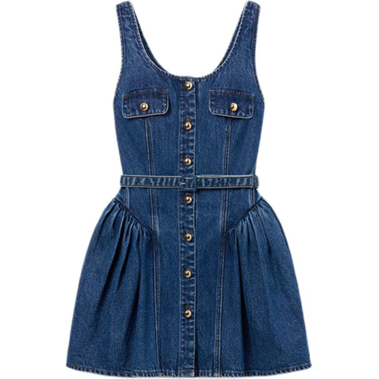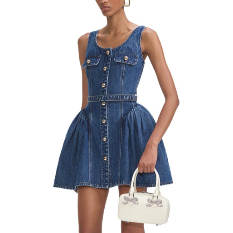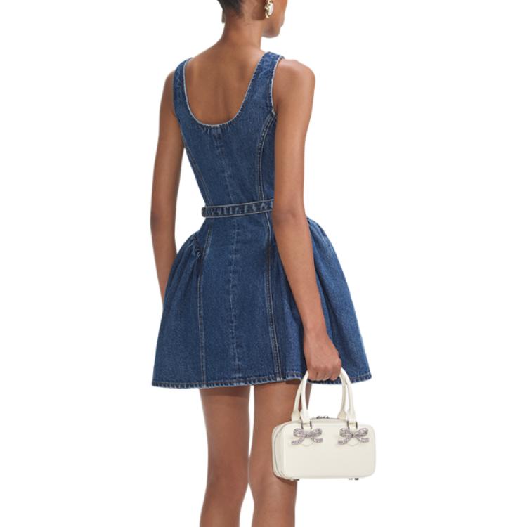Фасон мини-платья с расклешенным подолом из денима Self-portrait, синий 78 284₽