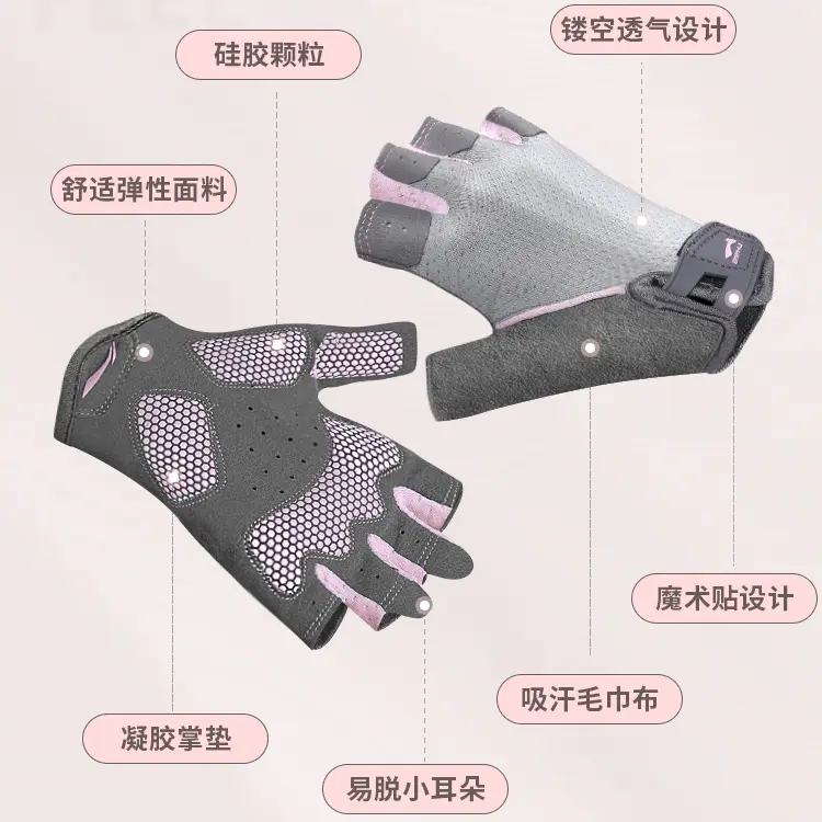 Фитнес-перчатки защитные Cotton Polyester женские LINING, серо-розовый