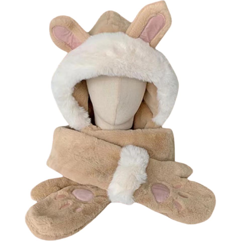 Cute Rabbit Ears Hats & Caps Scarf Set Doll Products Fluffy bear, хаки