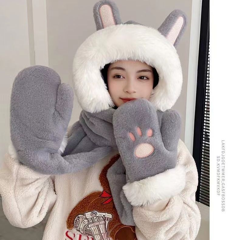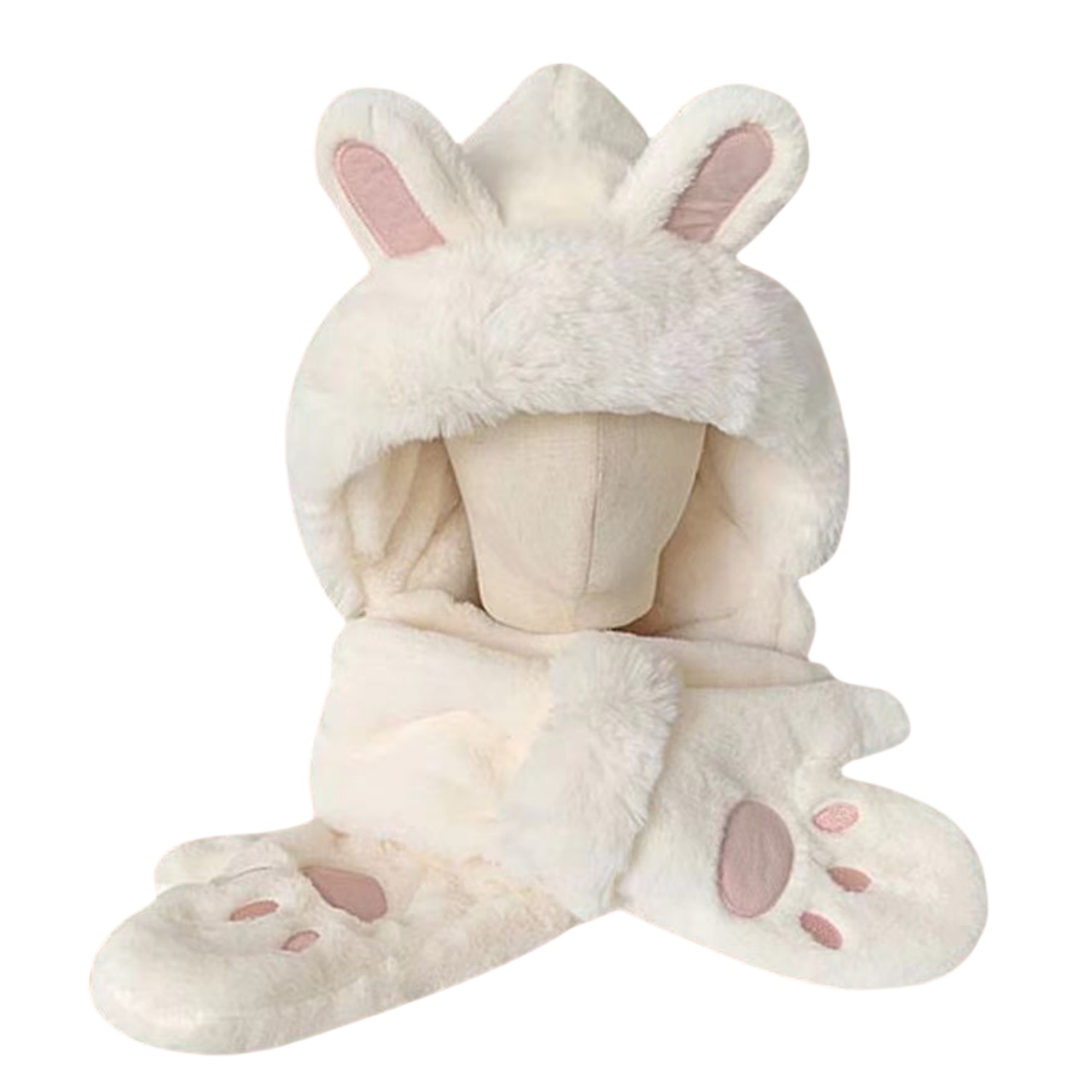 Cute Rabbit Ears Hats & Caps Scarf Set Doll Products Fluffy bear, хаки 1 686₽