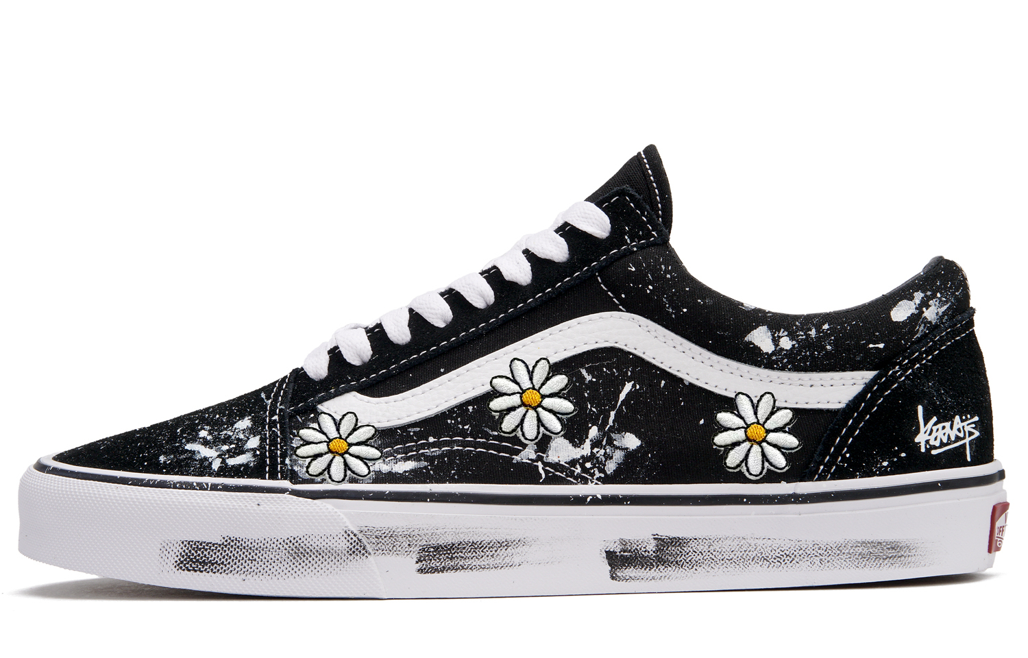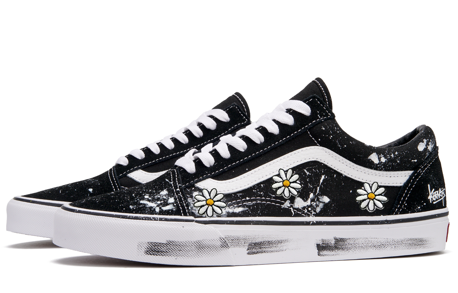 Эти кастомные кроссовки созданы на основе оригинальных низких черных замшевых кроссовок Vans Old Skool, в стиле унисекс с хорошим сцеплением и легкой конструкцией. Оригинальный код товара - VN000D3HY28, а дополнительный - VN000D3HY281. Вдохновленная ромашками минималистичная цветовая гамма в сочетании с ромашковым узором создает уникальный и модный образ. Общий дизайн - самобытный, универсальный и вневременной, он гарантированно привлечет внимание. Кроме того, эти кроссовки станут эффектным аксессуаром.