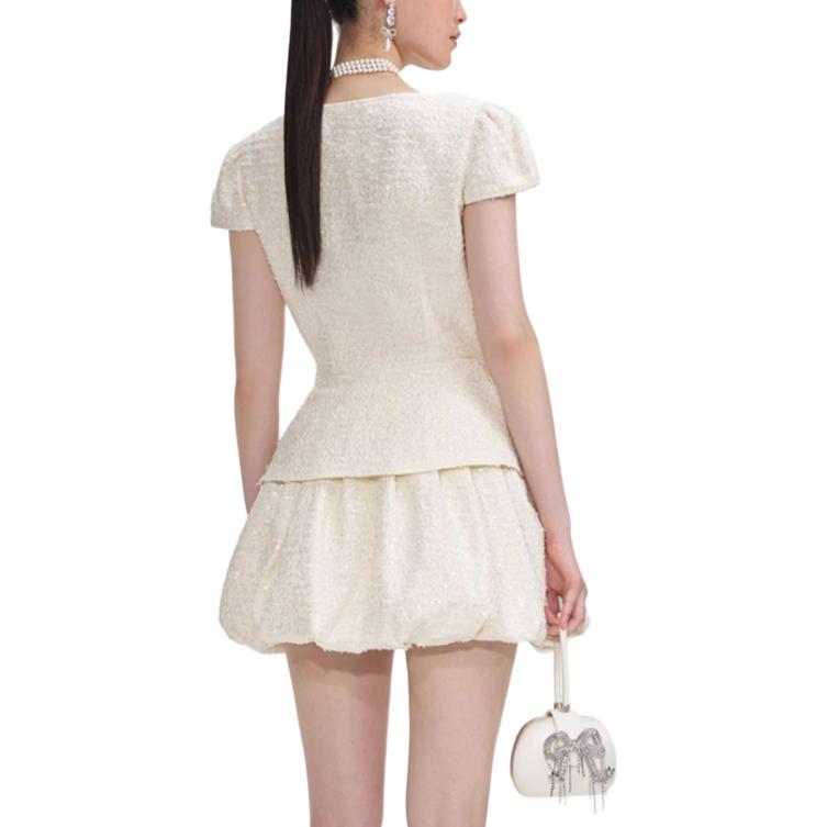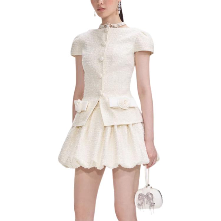 Мини-платье с бантом и отделкой из букле Self-portrait, слоновая кость