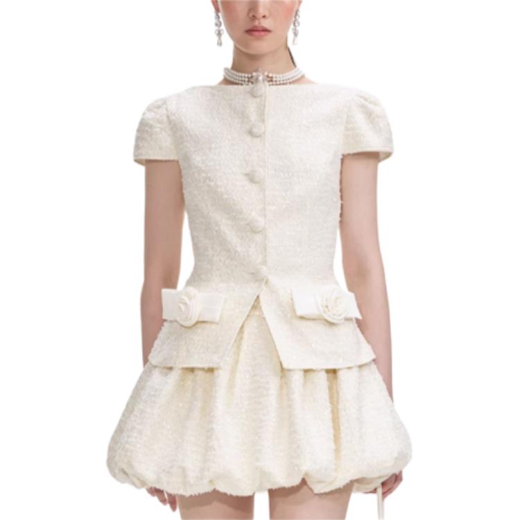 Мини-платье с бантом и отделкой из букле Self-portrait, слоновая кость 96 649₽
