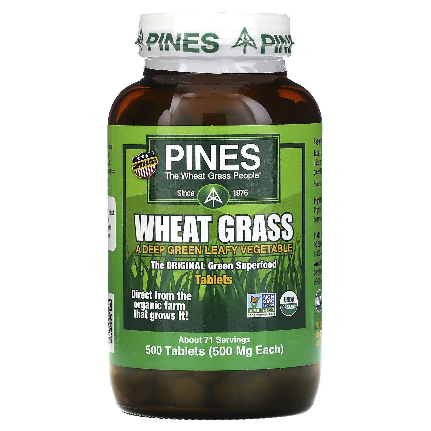 Органические ростки пшеницы от Pines выращиваются только на ледниковых почвах без орошения. Они созревают медленно в холодные месяцы. Морозные ночные температуры и холодные дни превращают месяцы полного солнечного света в ростки, богатые питательными веществами (таблетки на 98% состоят из ростков пшеницы).