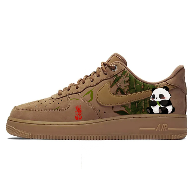 Эти кроссовки созданы на основе оригинальных Nike Air Force 1 07 LV8 Workboot - классических, прочных и легких кроссовок в ретро-стиле с низким верхом, выполненных из нубука пшеничного цвета. Артикул модели: CJ9179-200. Дизайн кроссовок выполнен в стиле панды с милыми и живыми элементами.