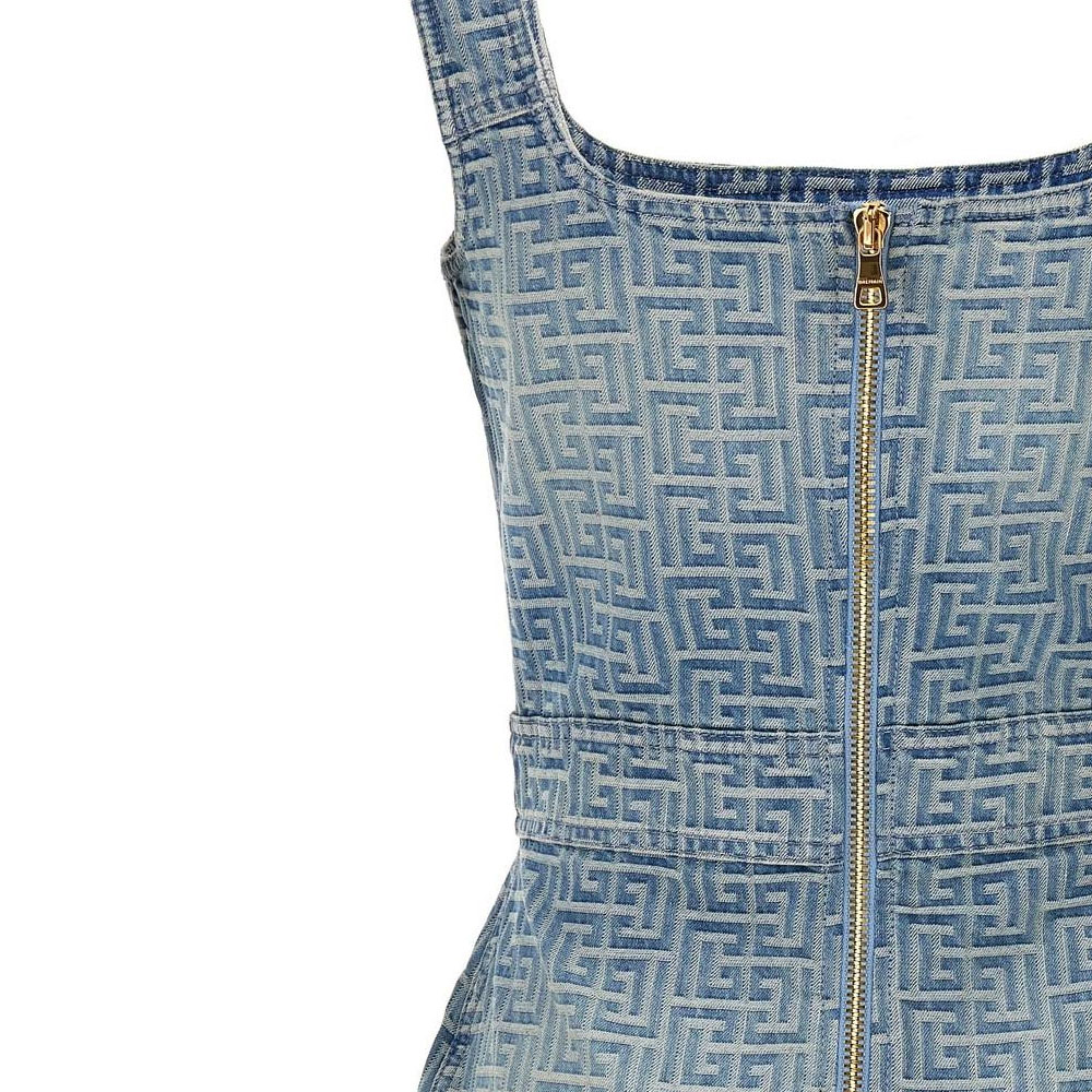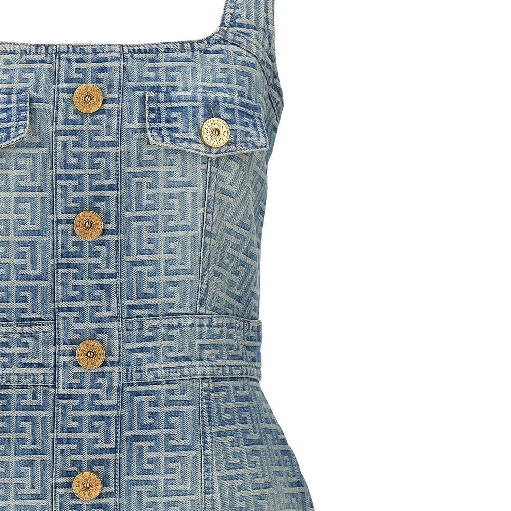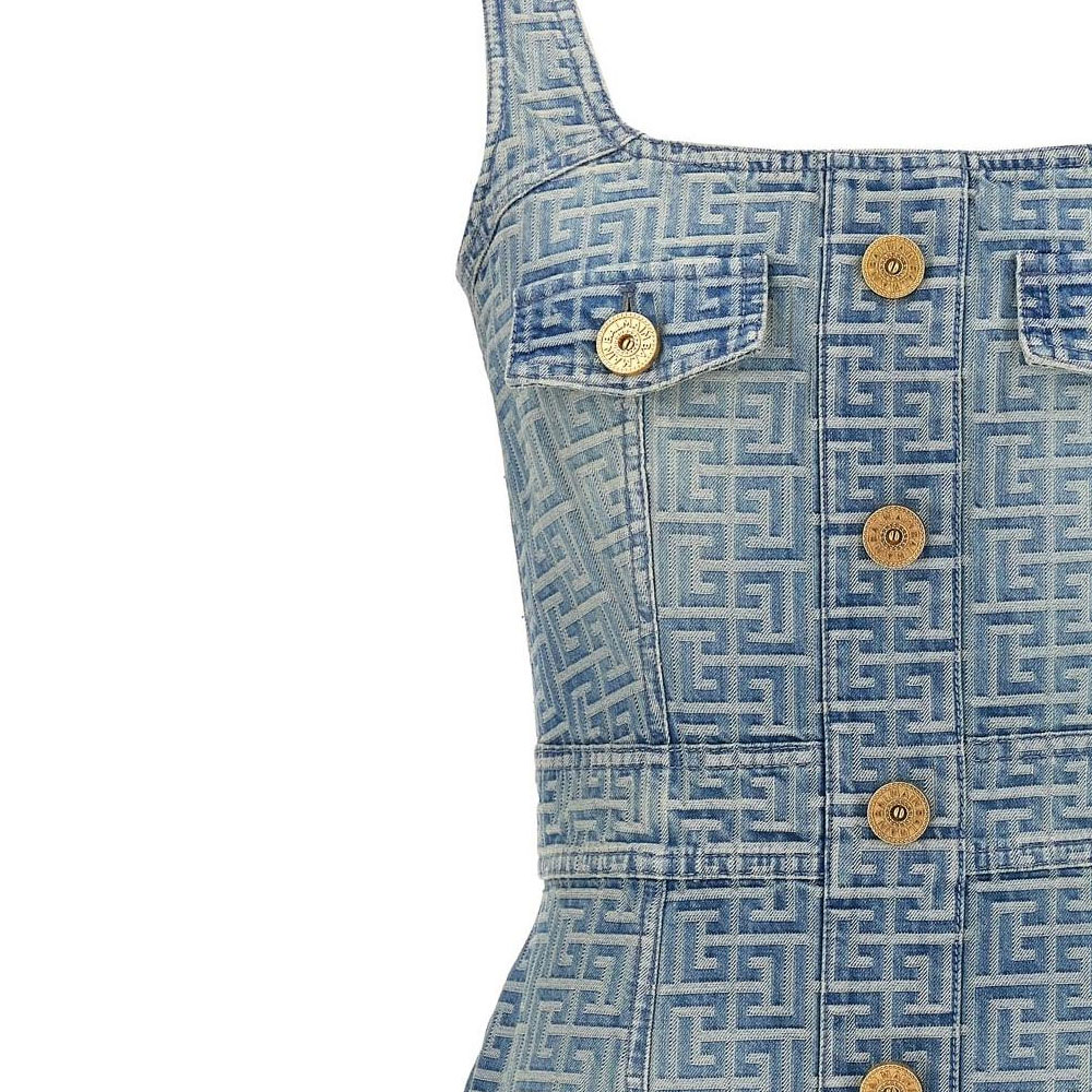 Мини-платье с квадратным вырезом и тиснением монограммы BALMAIN, синий