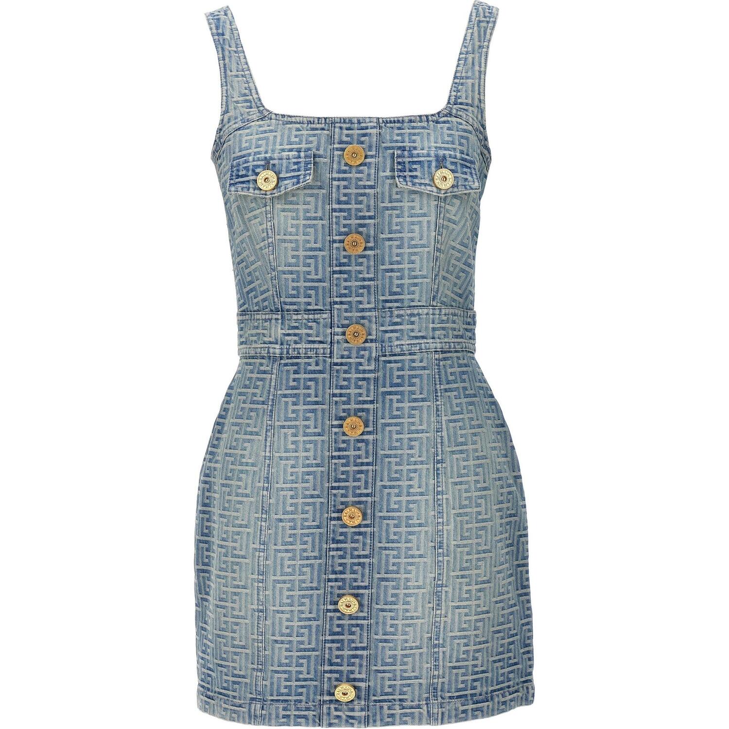 Мини-платье с квадратным вырезом и тиснением монограммы BALMAIN, синий 87 244₽