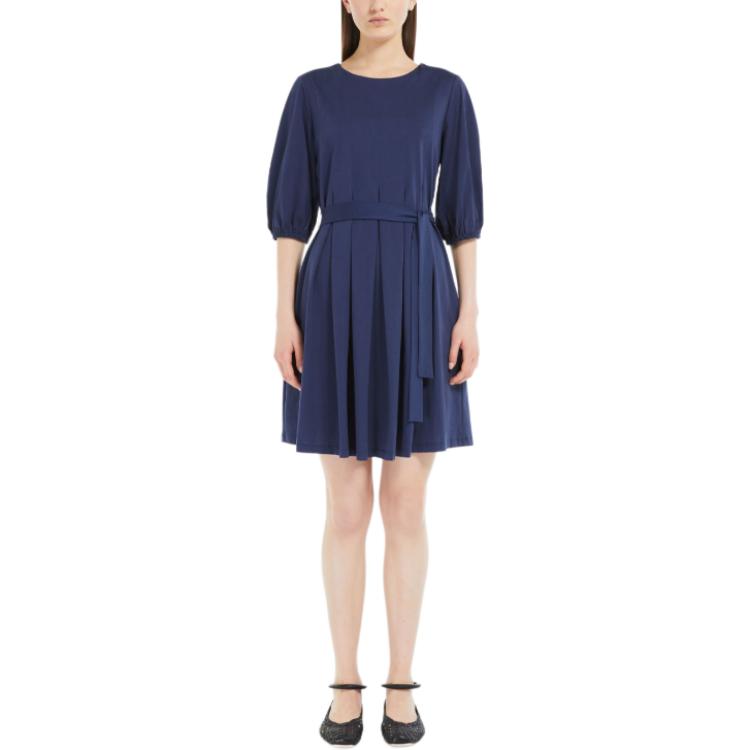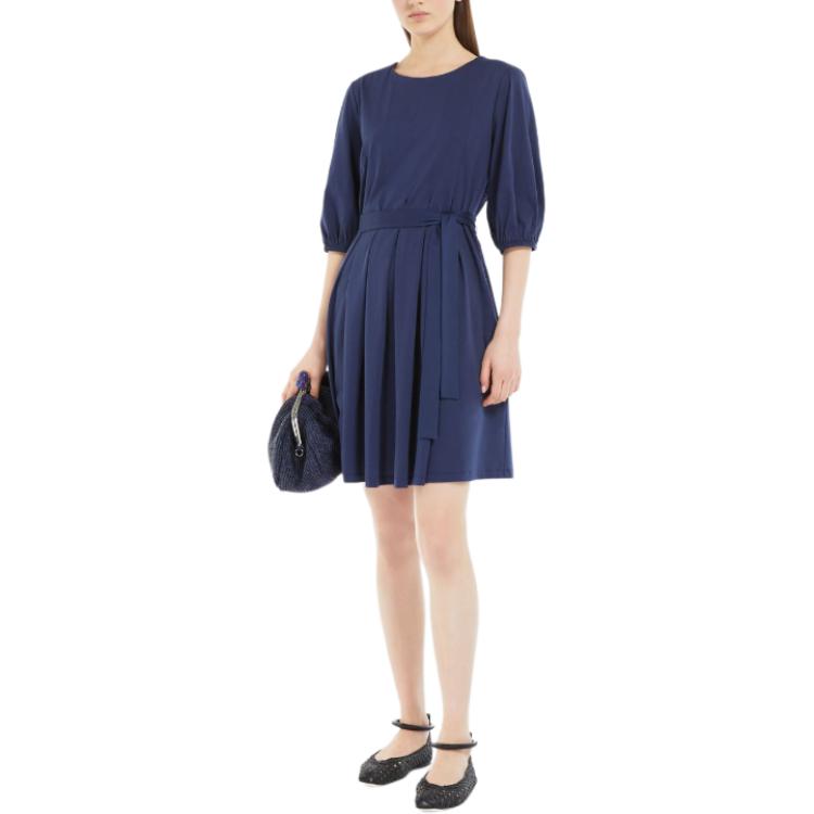 WEEKEND MaxMara Женское платье с короткими рукавами темно-синего цвета
