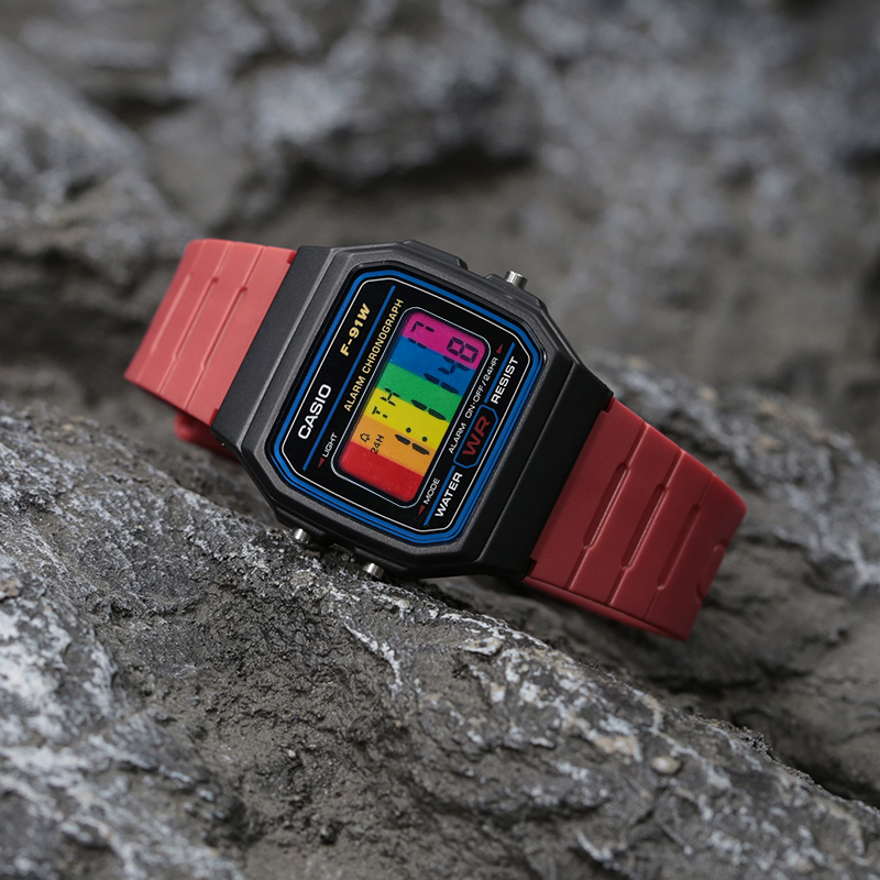 Цвет ремешка: вертикальные полосы, радужный экран, ремешок земляного тона
