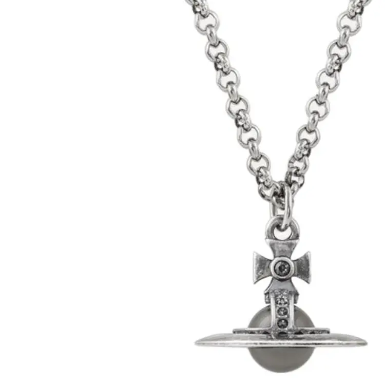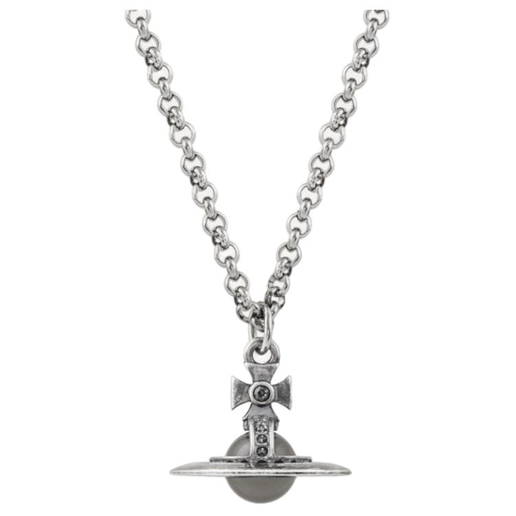 Vivienne Westwood Латунный кулон Saturn Medium Size с 3D-эффектом, унисекс, серебристый/Nightfall Gray