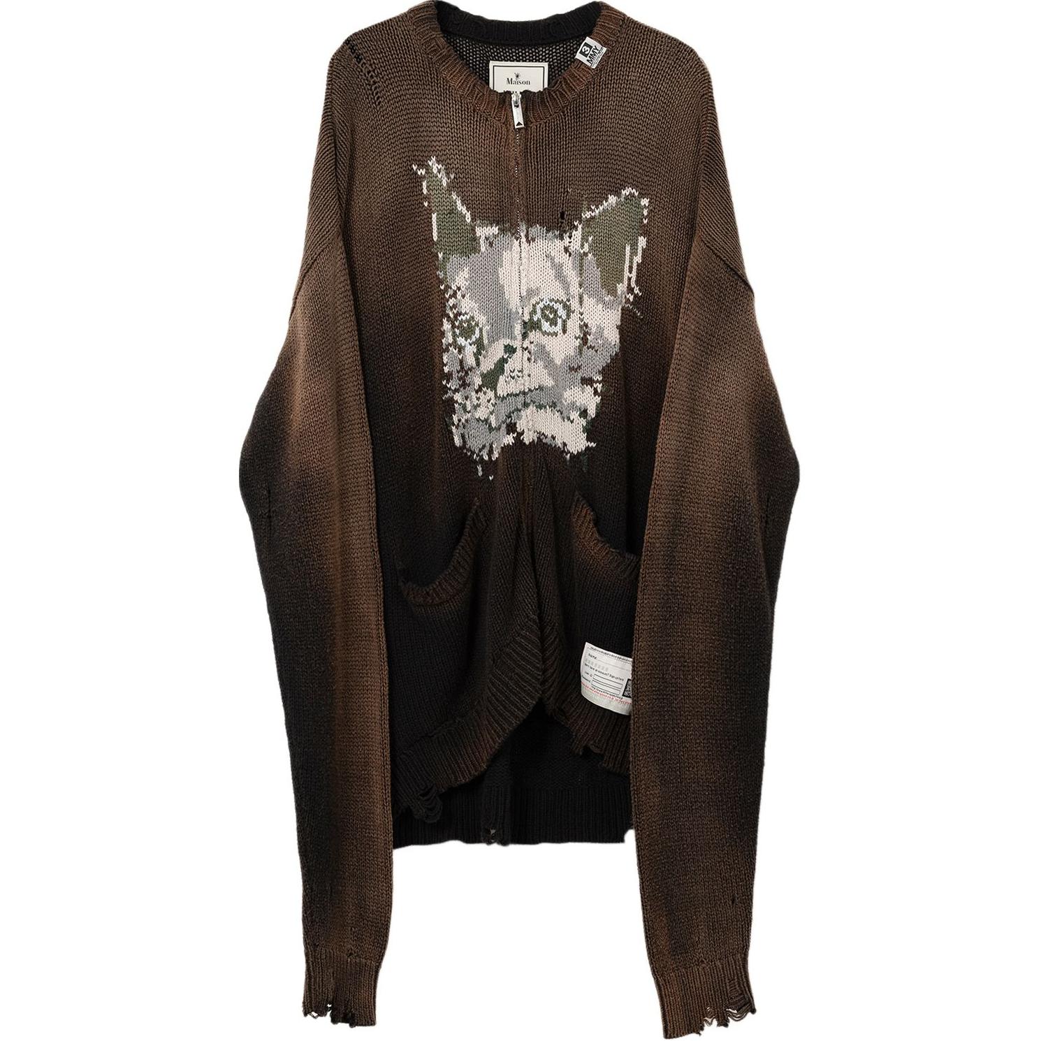 Кардиган с молнией Cat face Distressed Maison Mihara Yasuhiro, черный