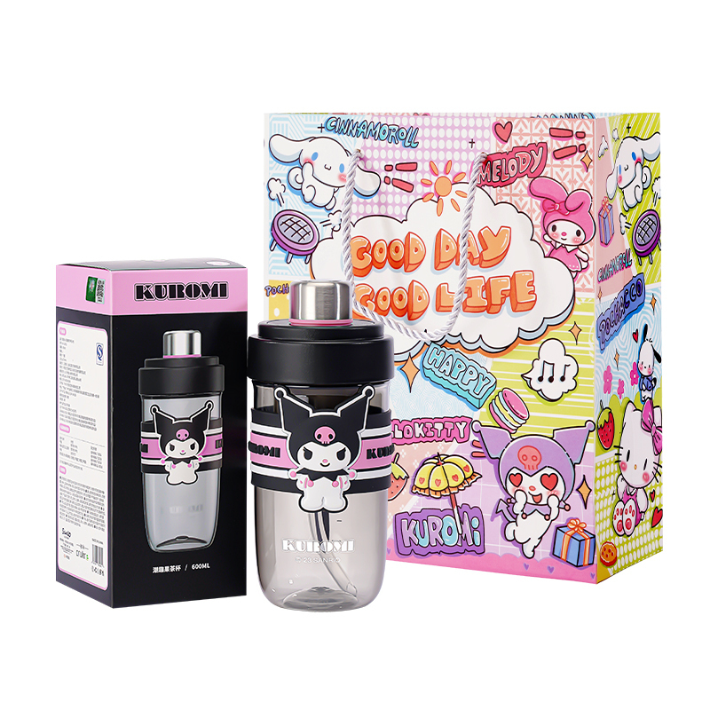 Пластиковые стаканы для воды Sanrio, Kuromi (Includes Cleaning Tools + Hello Kitty Sticker + Gift Bag)