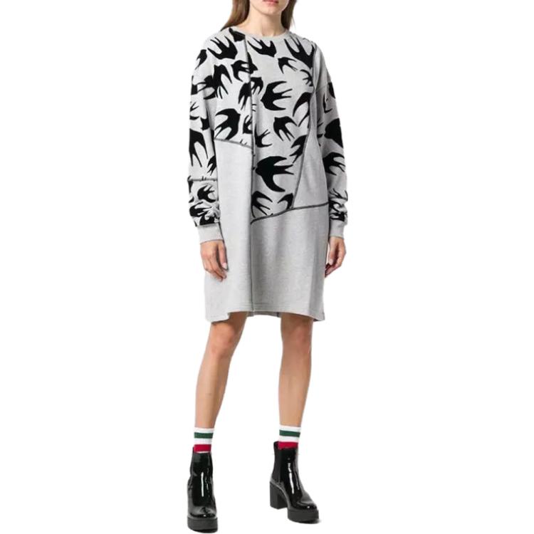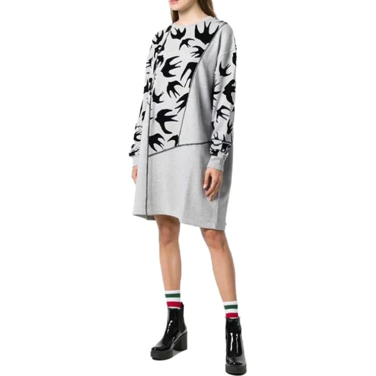 Женское серое платье с длинными рукавами McQ Alexander McQueen, серый