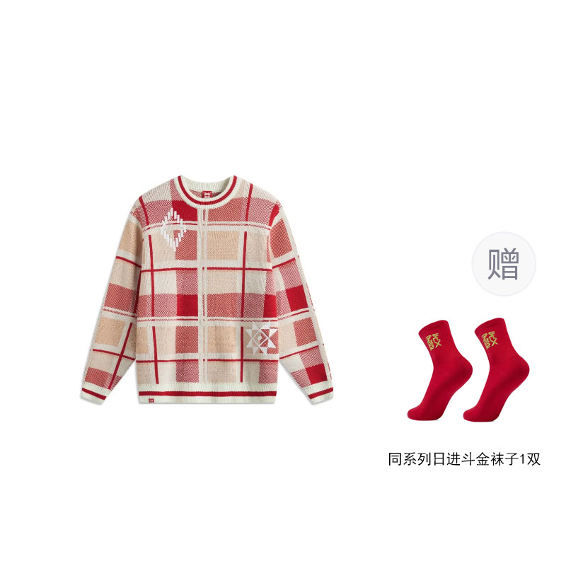 LINING Rijin Doujin Collection вязаный свитер мужской белый клетчатый