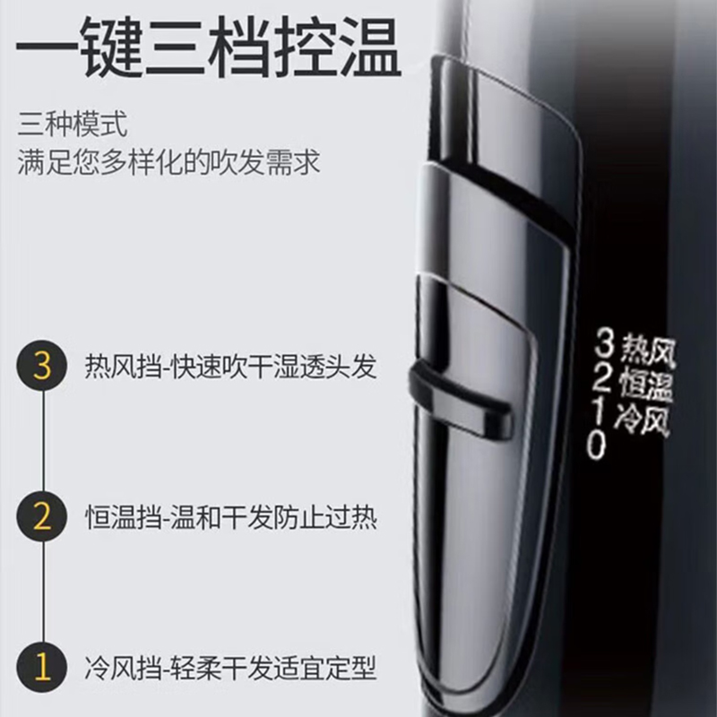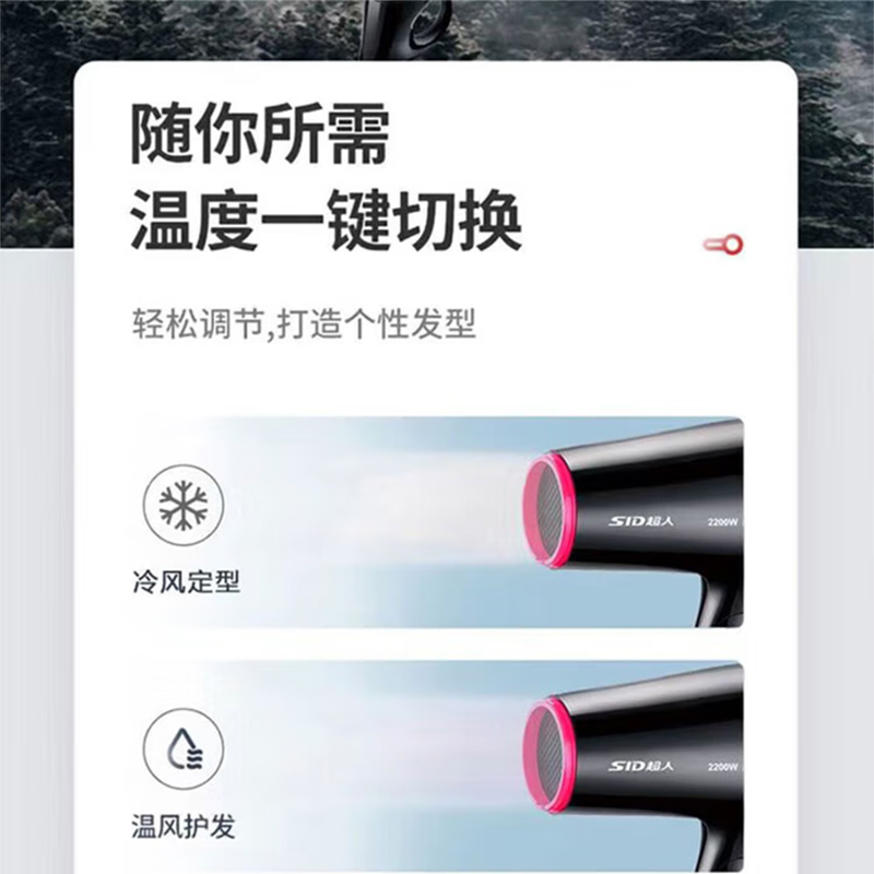 Фен мощный с холодным и горячим воздухом складной RD2215 SID, черный