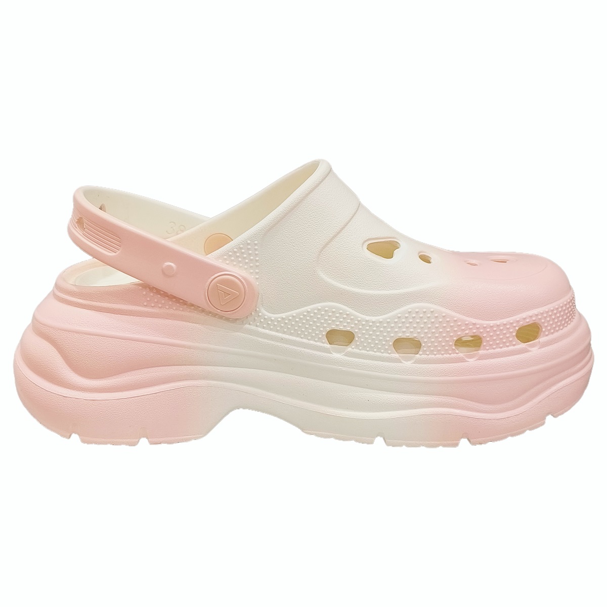 Градиентные розовые сабо добавят радости рукоделия. Легкие, дышащие и простые в использовании сабо оснащены съемной легкой стелькой для тайцзи с противоскользящим рисунком Turing для надежного сцепления с поверхностью и улучшения ощущений стопы. Скрытый дизайн, увеличивающий высоту на 6 см, и легкий, упругий каблук делают их подходящими для самых разных случаев, включая пляжный отдых, студенческую жизнь, путешествия и прогулки по городу. Съемный ремешок на пятке позволяет легко адаптировать модель под разные ситуации.
