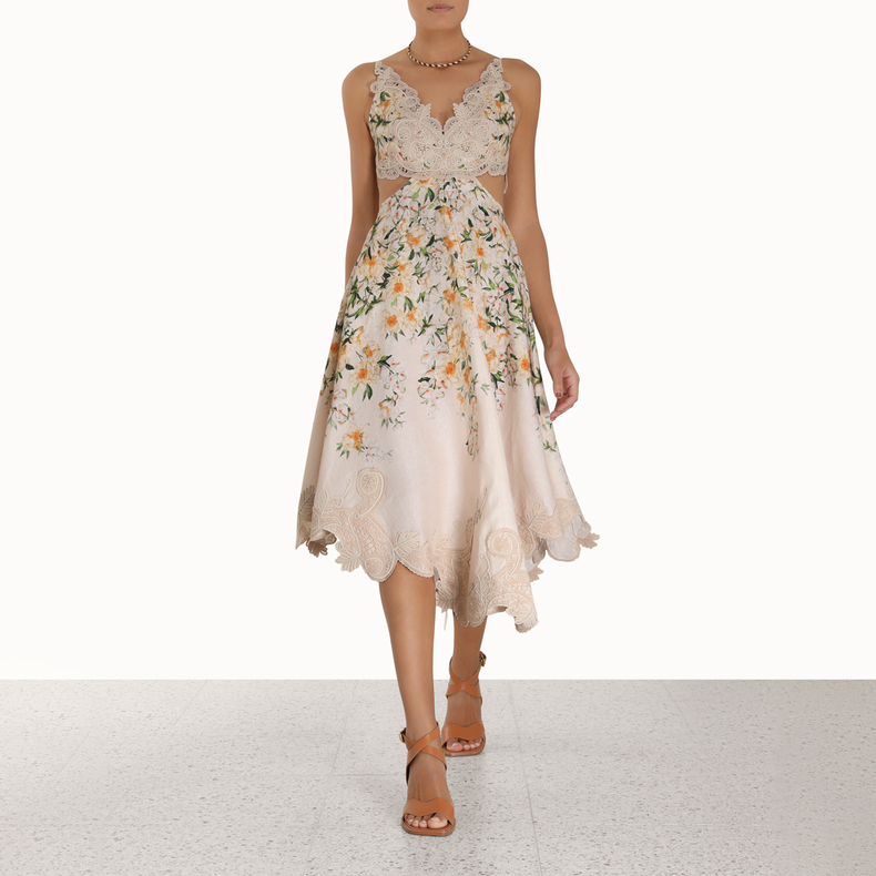 Платье миди Coaster Battenburg с цветочным принтом Zimmermann, Rouge