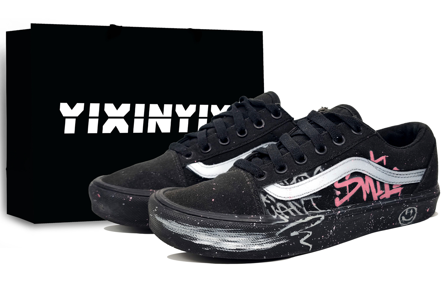 Эти кастомные кроссовки созданы на основе оригинальных классических низких плетеных кроссовок Vans Old Skool черного цвета, унисекс. Оригинальный стиль выбран случайным образом. Дизайн вдохновлен американскими уличными граффити. Фотографии представляют собой реальный продукт; возможны небольшие отклонения в цвете. Все кастомные кроссовки изготавливаются вручную, и каждая пара будет иметь небольшие отличия. (Примечание: узор и цвет специального подарочного пакета будут выбраны случайным образом.)