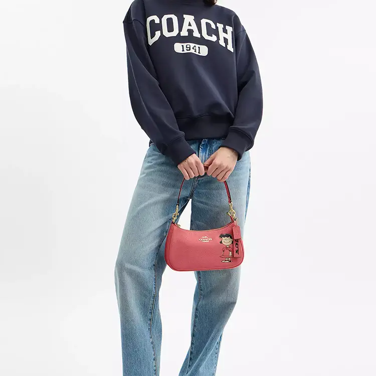 COACH Сумка кросс-боди PEANUTS Collaboration Teri Leather, плечевая сумка Medium Women's Coral Red