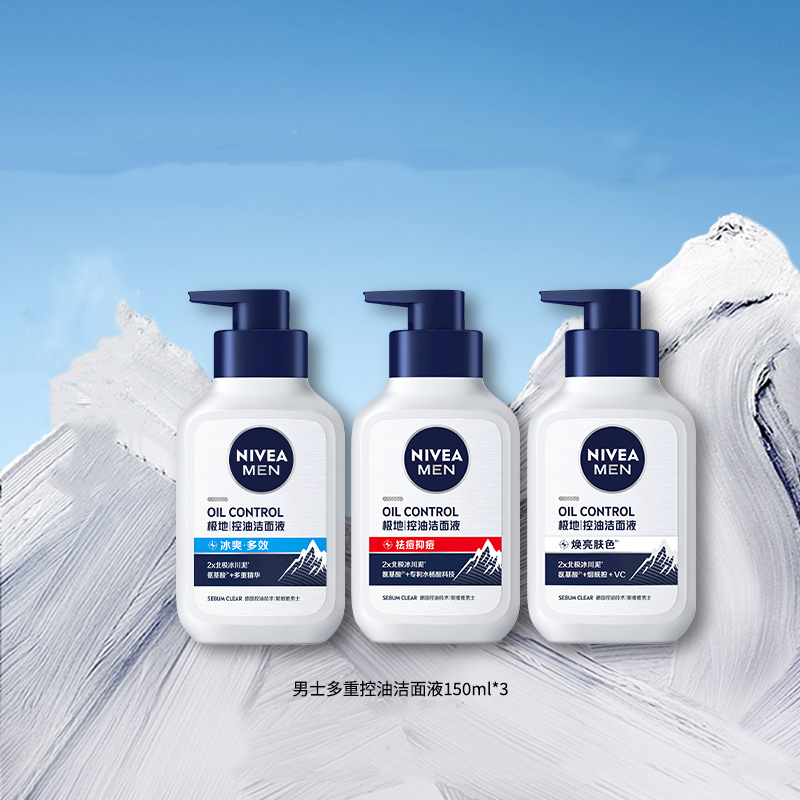 Мужской лосьон для умывания с контролем жира успокаивающий, увлажняющий и освежающий 150мл*3 NIVEA