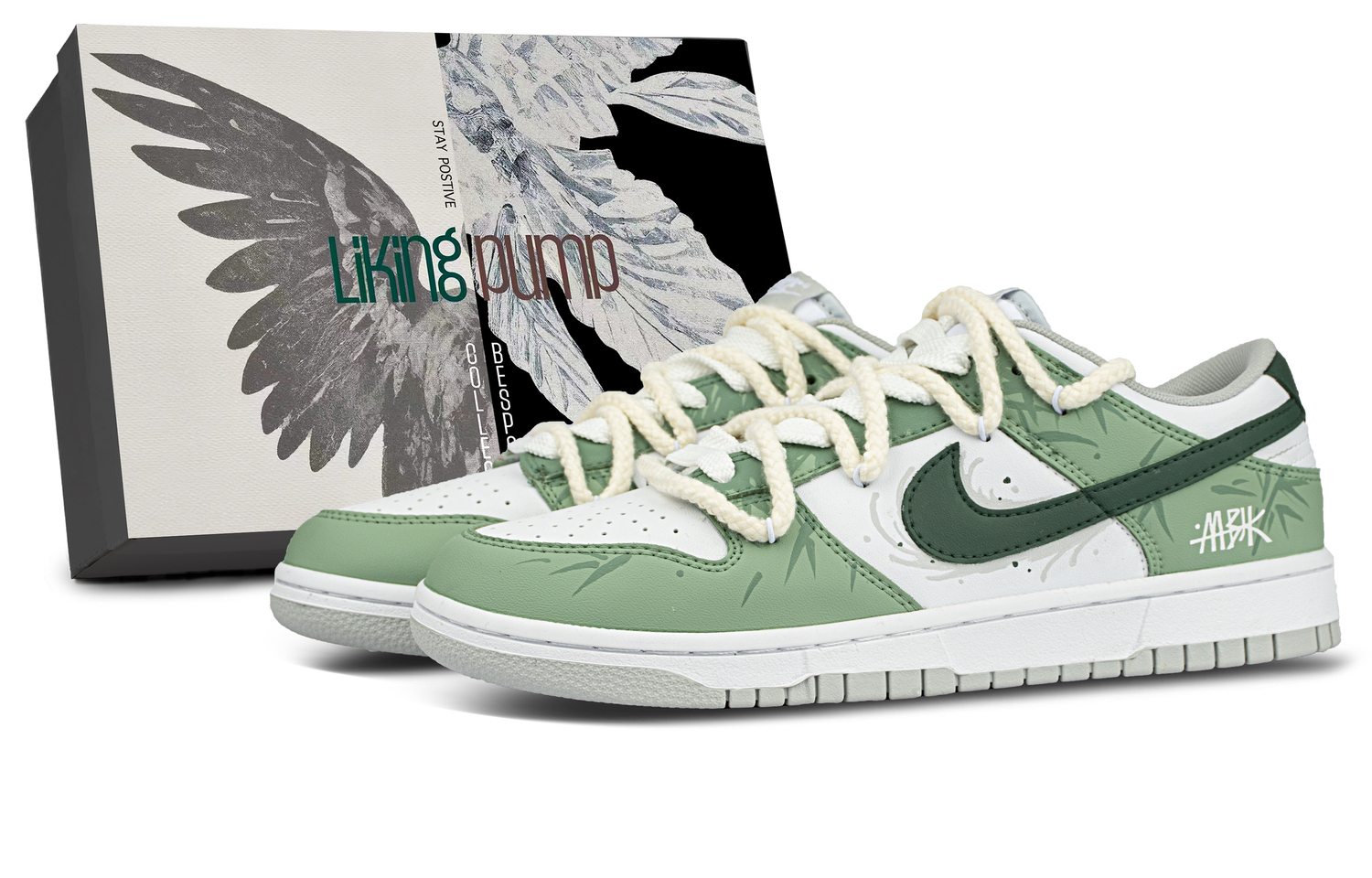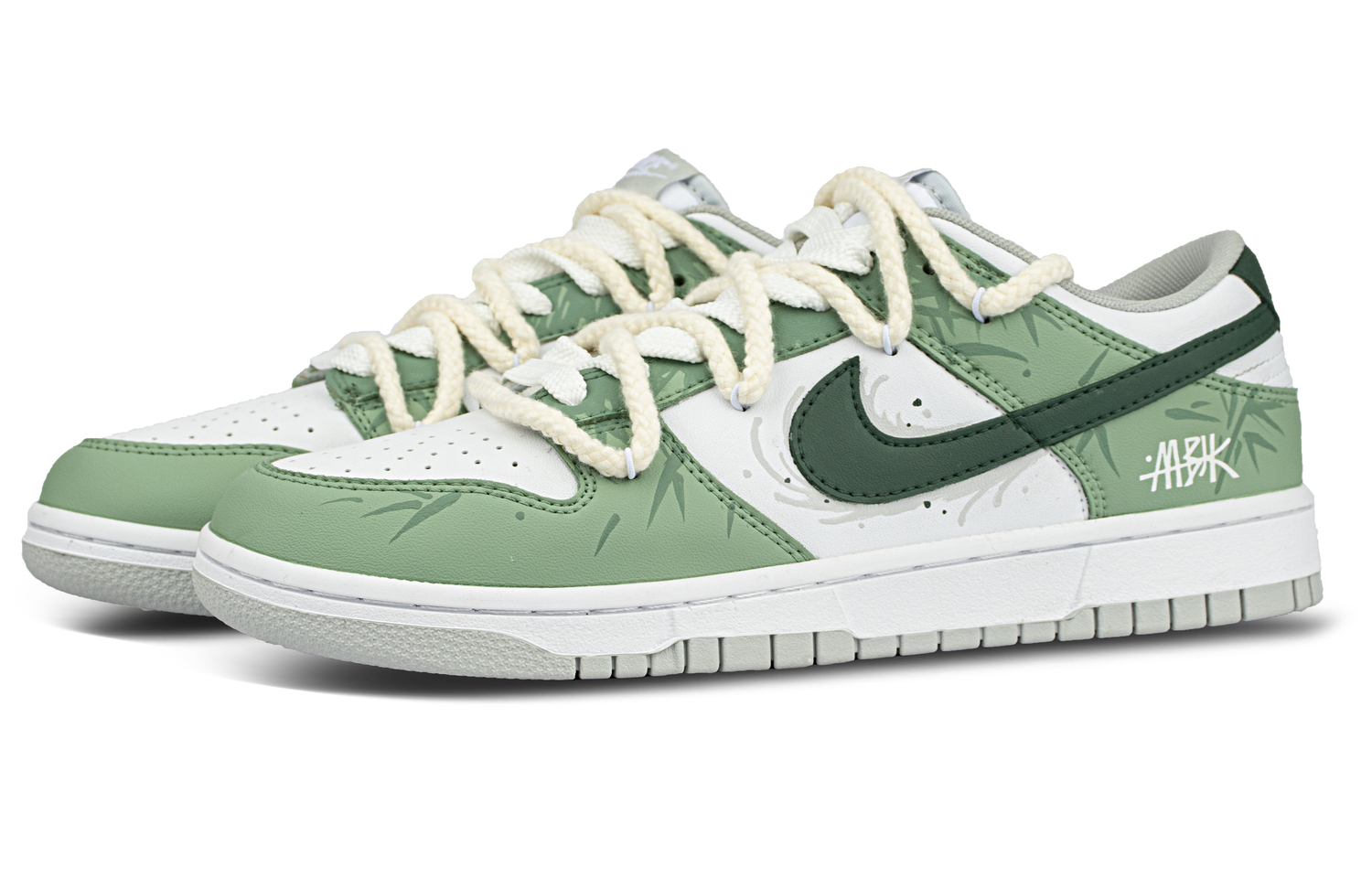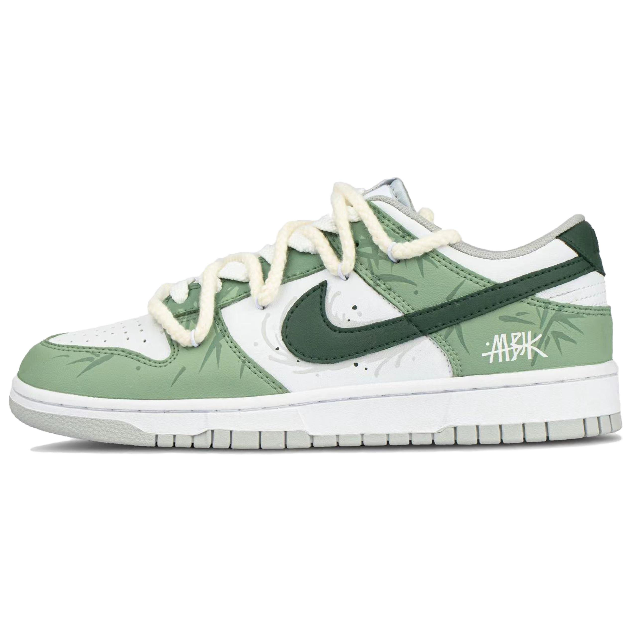 Эти кастомные кроссовки созданы на основе оригинальных удобных и универсальных кроссовок Nike Dunk с артикулом DD1391-103 и дополнительными артикулами HF5441-105 (Team845-Bamboo Shadow-Box), DD1873-113 (Team845-Bamboo Shadow-Box) и DD1503-103 (Team845-Bamboo Shadow-Box). Дизайн вдохновлен ледниковыми горами. Вся модель выполнена в зеленой цветовой гамме с мелкими узорами и цветовыми сочетаниями, что выделяет ее из толпы. Она проста, но не монотонна. Дизайн учитывает повседневную одежду, поэтому общий вид довольно гармоничен.