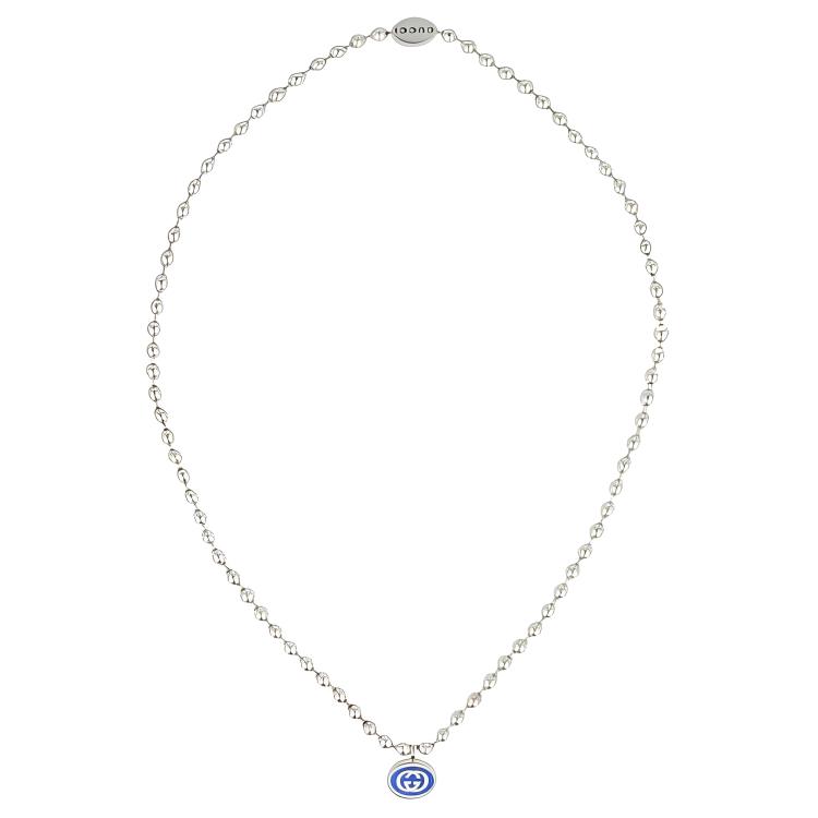 GUCCI Серебряное колье Sterling Silver для женщин, цвет Silver/Blue