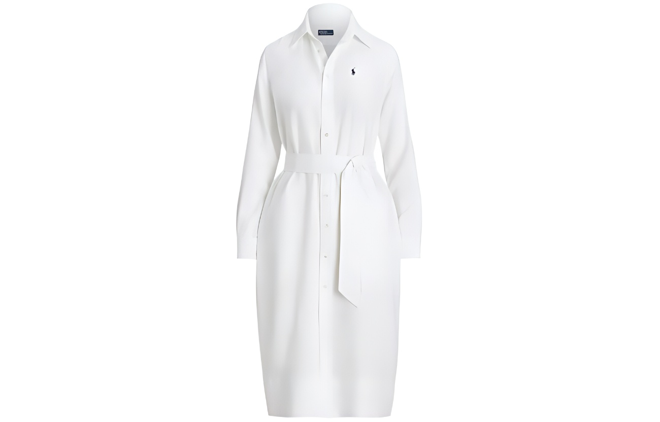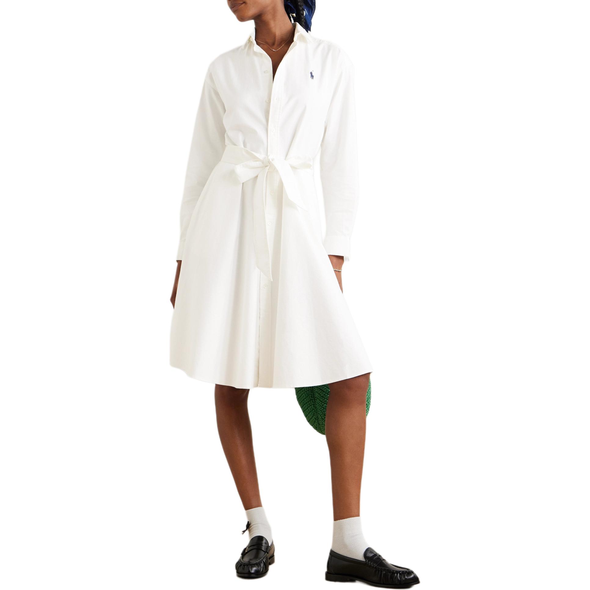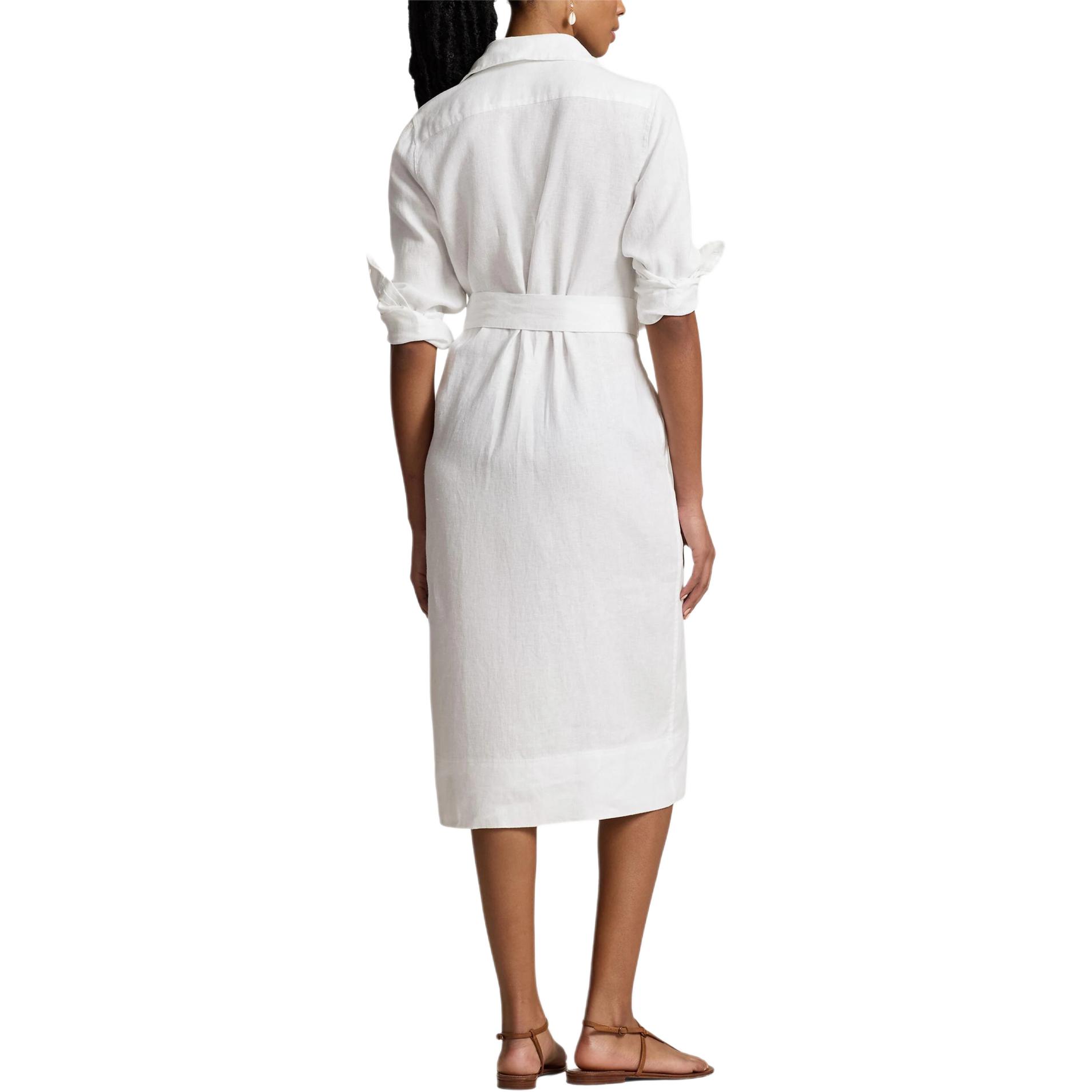Льняное платье-рубашка с вышитым логотипом Polo Ralph Lauren, белый
