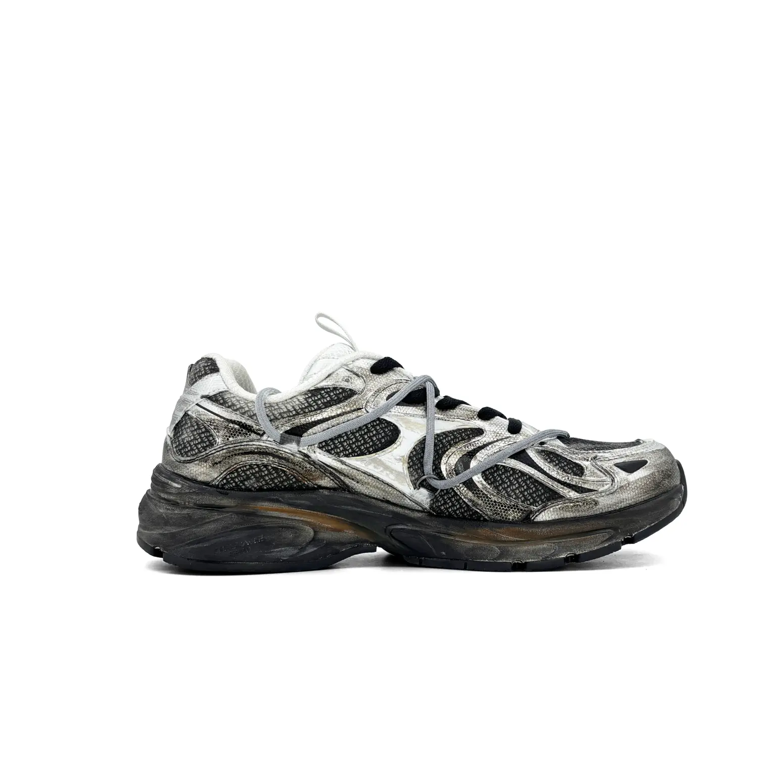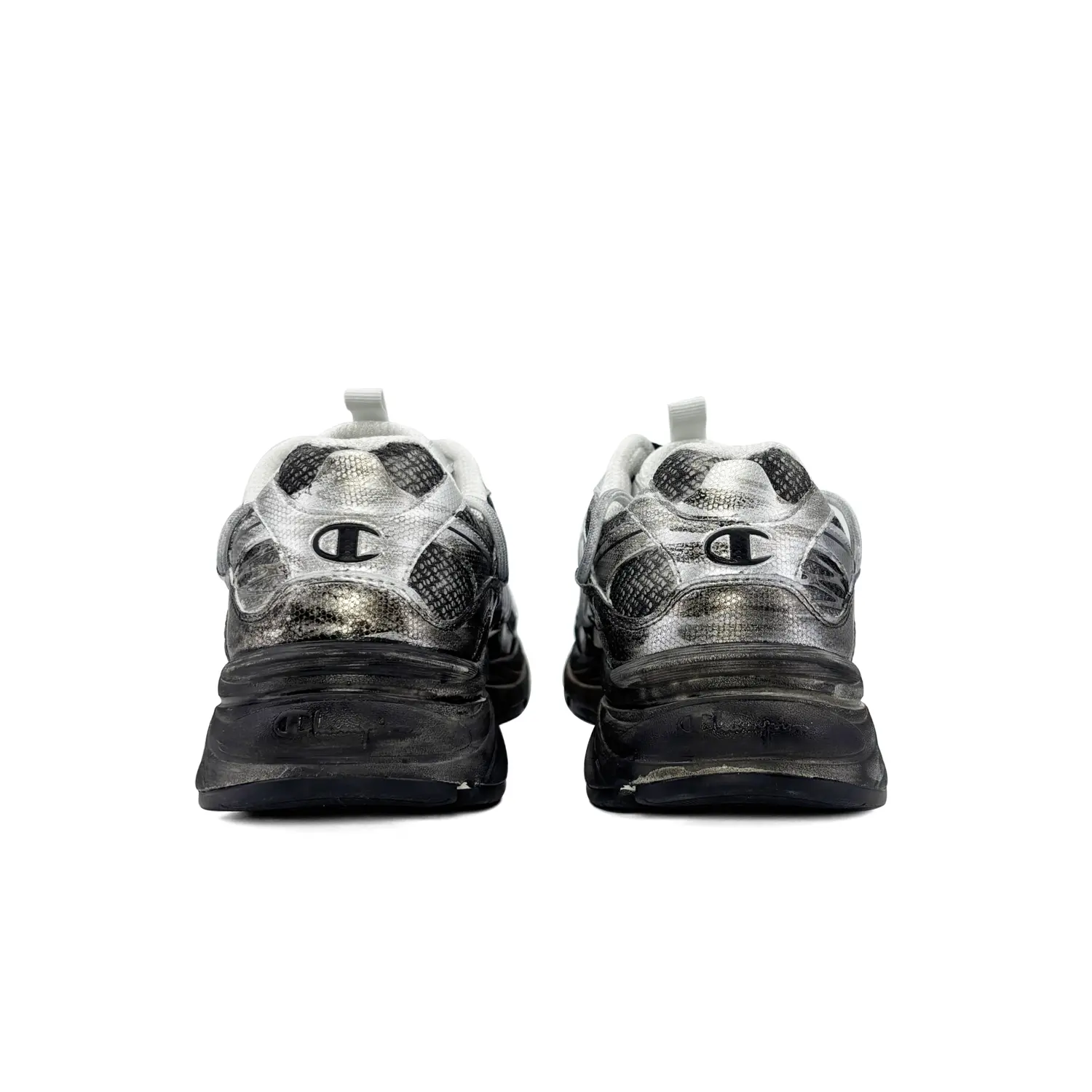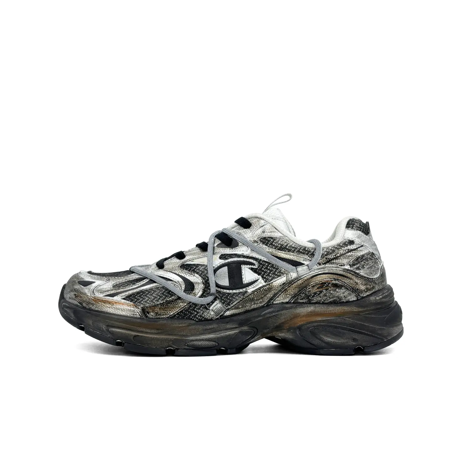 Эти кастомные кроссовки основаны на модели Champion. Классический низкий силуэт Champion вдохновлен бескрайней дикой природой. Верхняя часть выполнена преимущественно в черном, коричневом и серебристом цветах с уникальными деталями, расписанными вручную. Промежуточная подошва перекликается с цветами верха, создавая гармоничный образ. Использование техник распыления и ручной росписи создает изысканное мастерство.