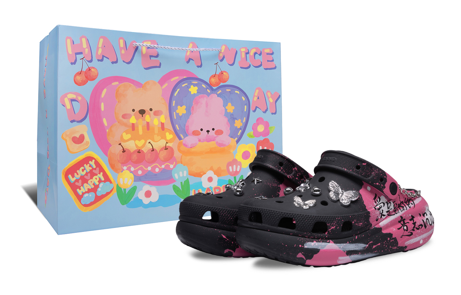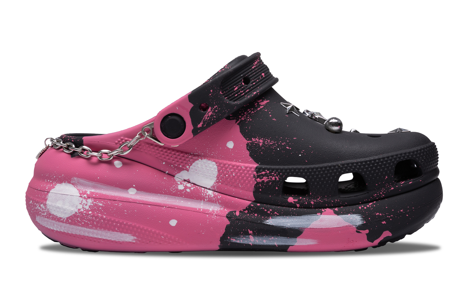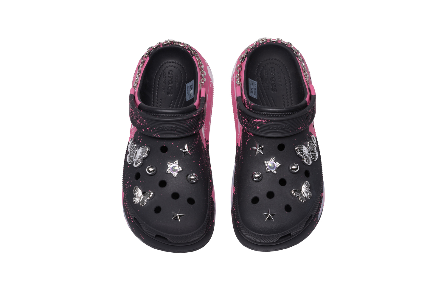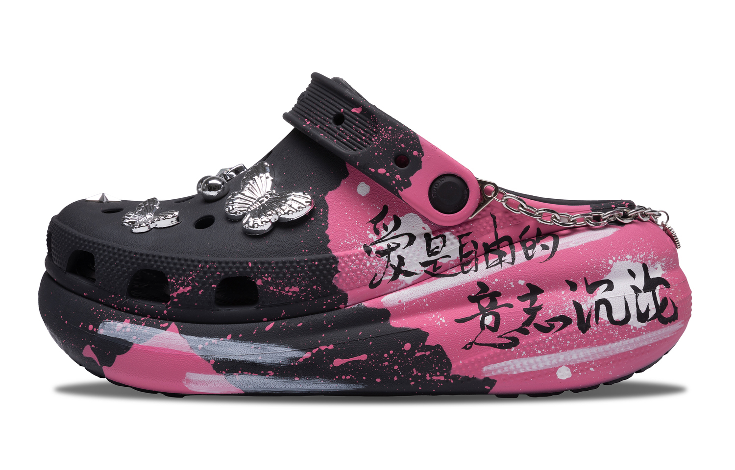 Эти кастомные кроссовки созданы на основе модели Crocs Crush. Они выполнены в черно-розовой цветовой гамме, отличаются универсальным и простым дизайном и украшены граффити для придания стильного вида. Кроссовки можно стирать обычным способом, избегая при этом чрезмерной физической активности и царапин от острых предметов. Используйте для стирки мягкую щетку с подходящей концентрацией моющего средства.