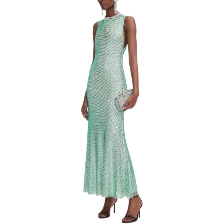 Платье с отделкой стразами для автопортрета Self-portrait, зеленый 146 664₽
